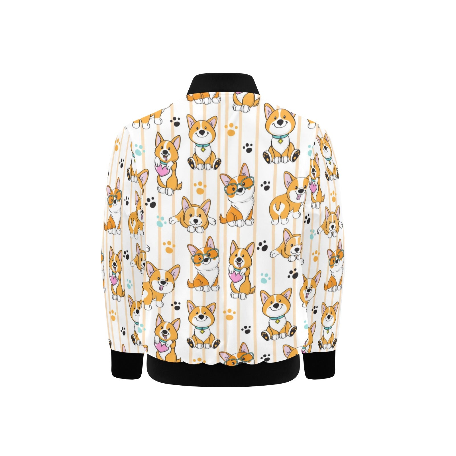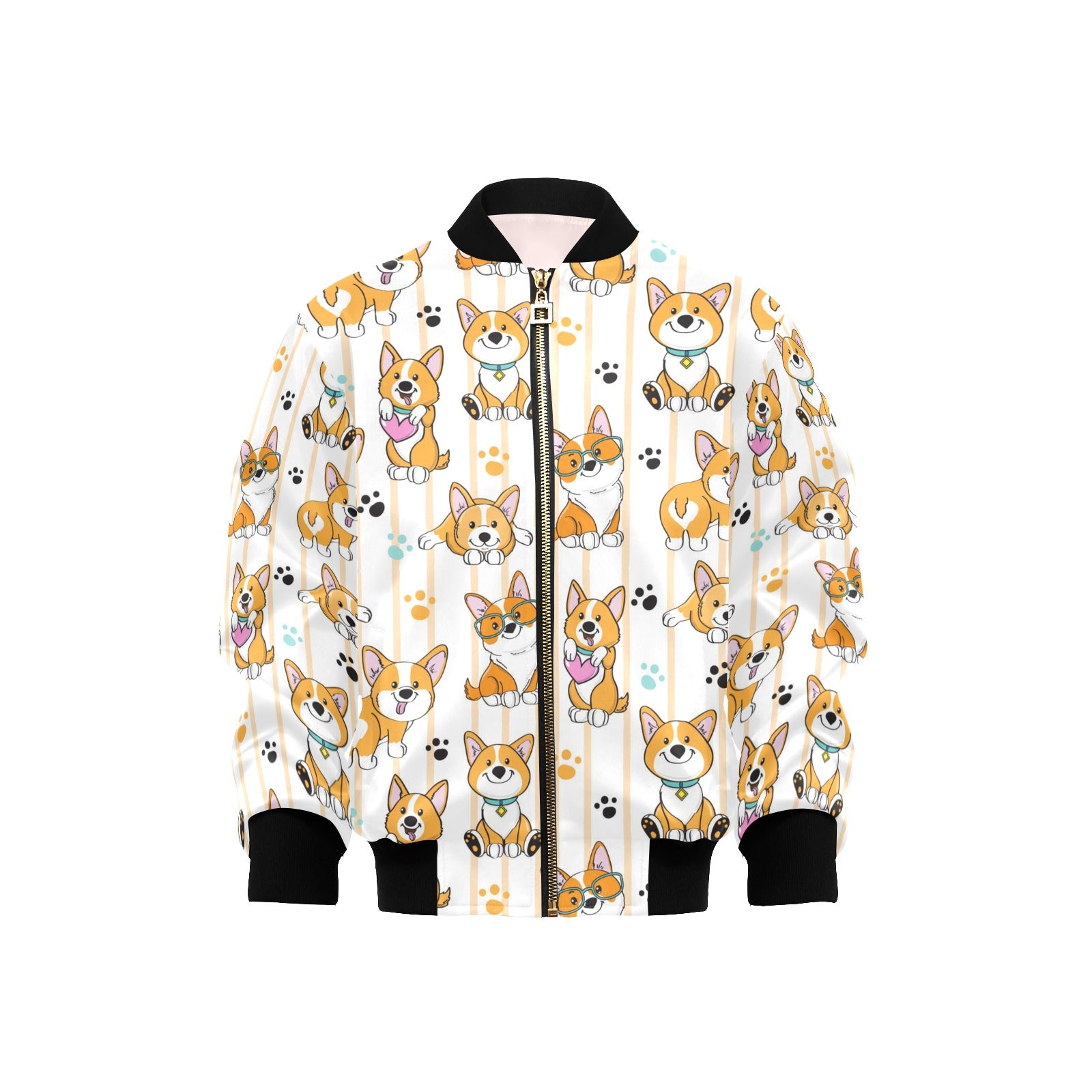 Cute dog corgi striped background pattern Kids' Boys' Girls' Bomber Jacket