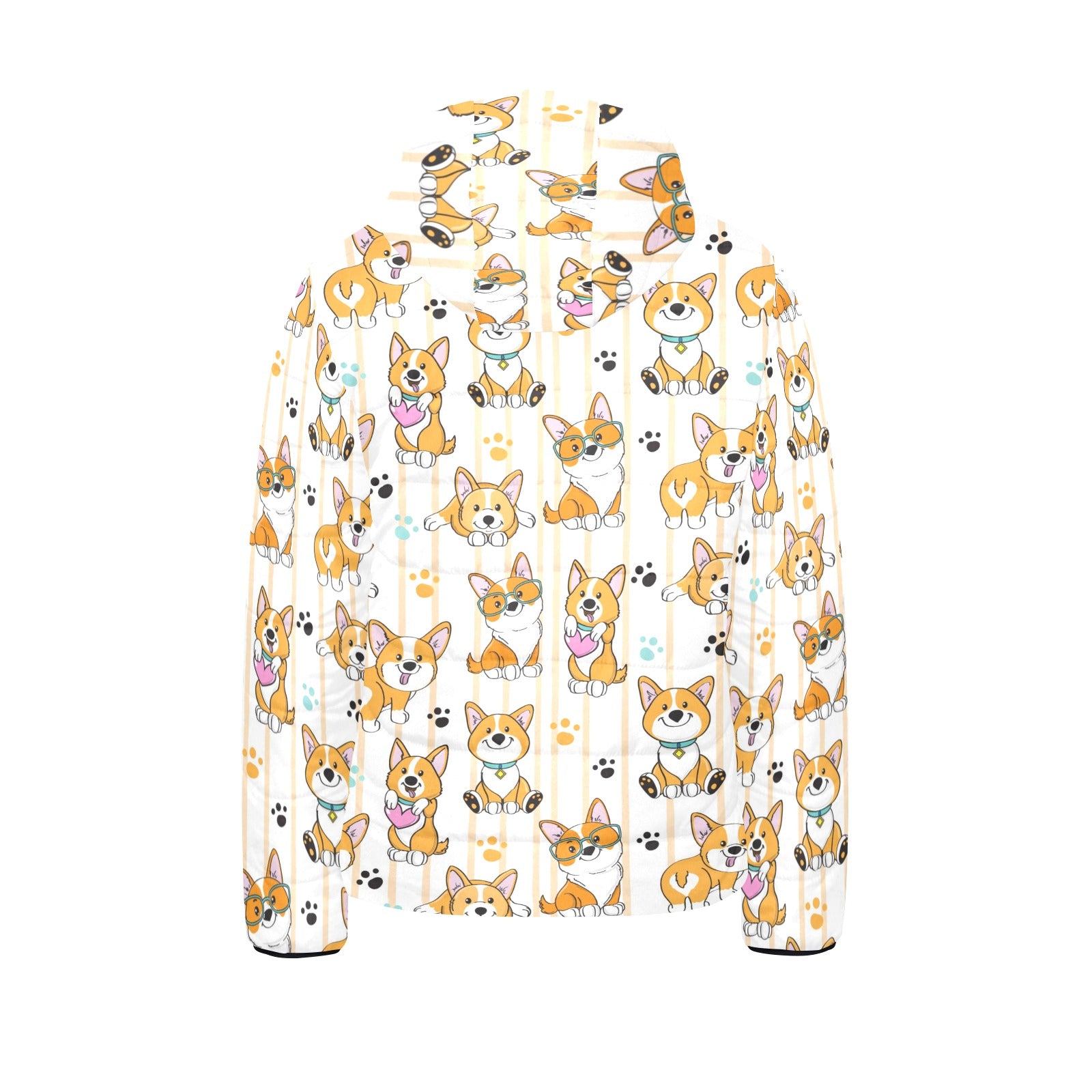 Cute dog corgi striped background pattern Kids' Boys' Girls' Padded Hooded Jacket