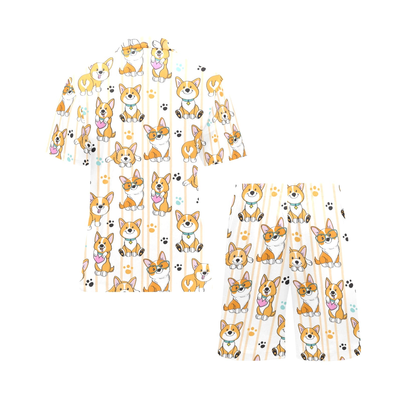 Cute dog corgi striped background pattern Men's V-Neck Short Pajama Set