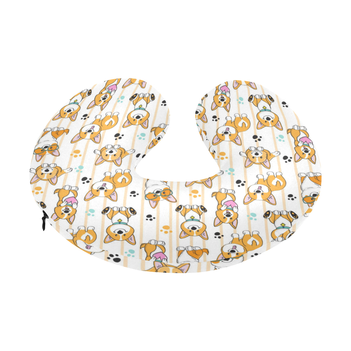 Cute dog corgi striped background pattern U-Shaped Travel Neck Pillow