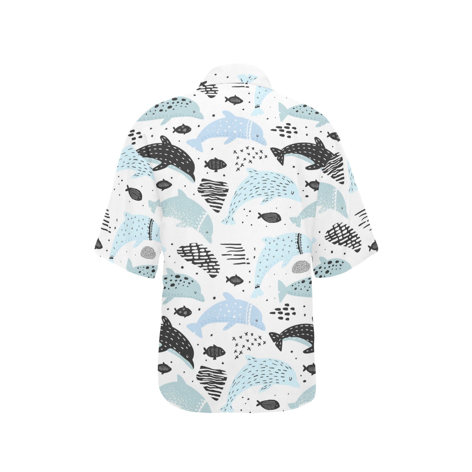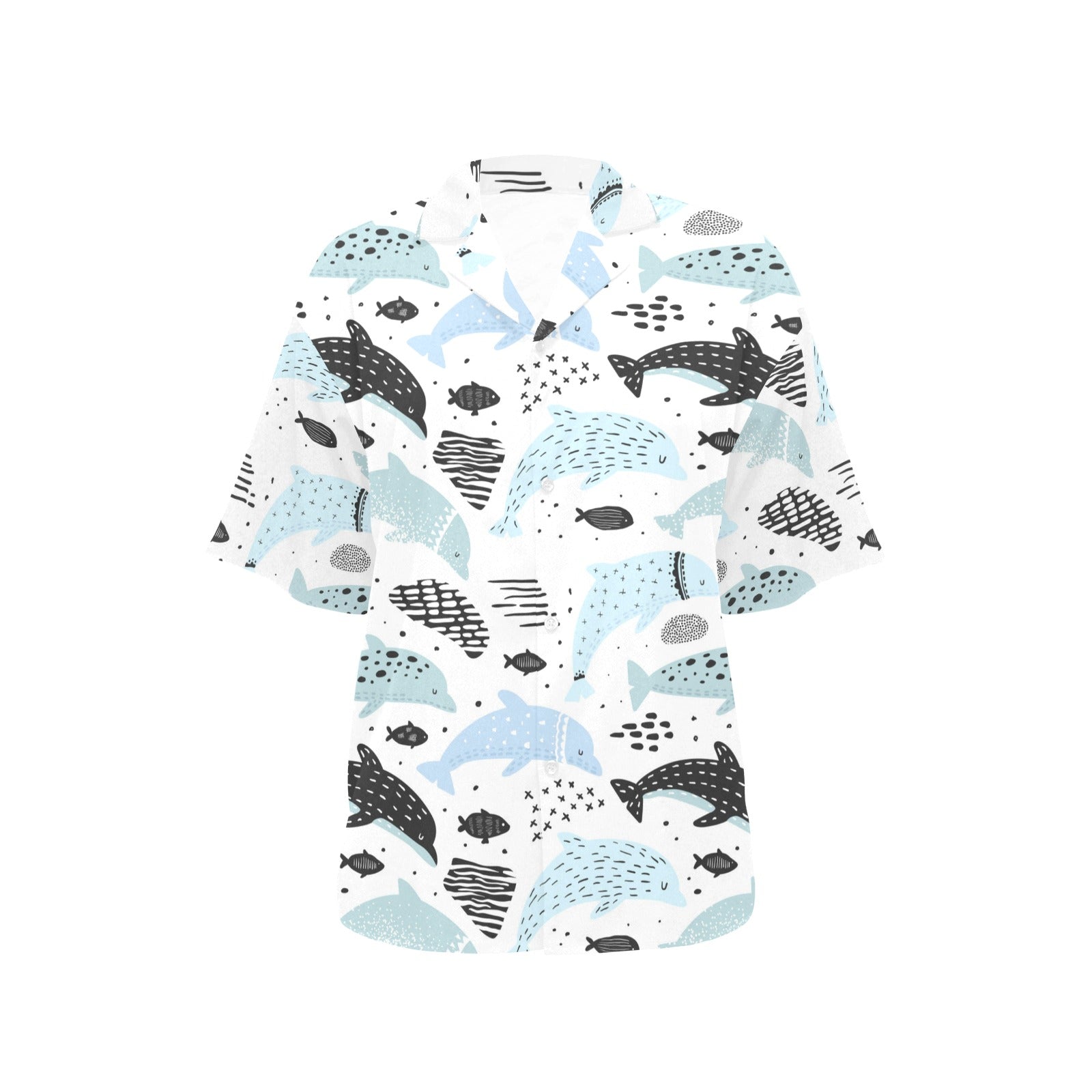 Cute dolphins Childish Style pattern Women's All Over Print Hawaiian Shirt