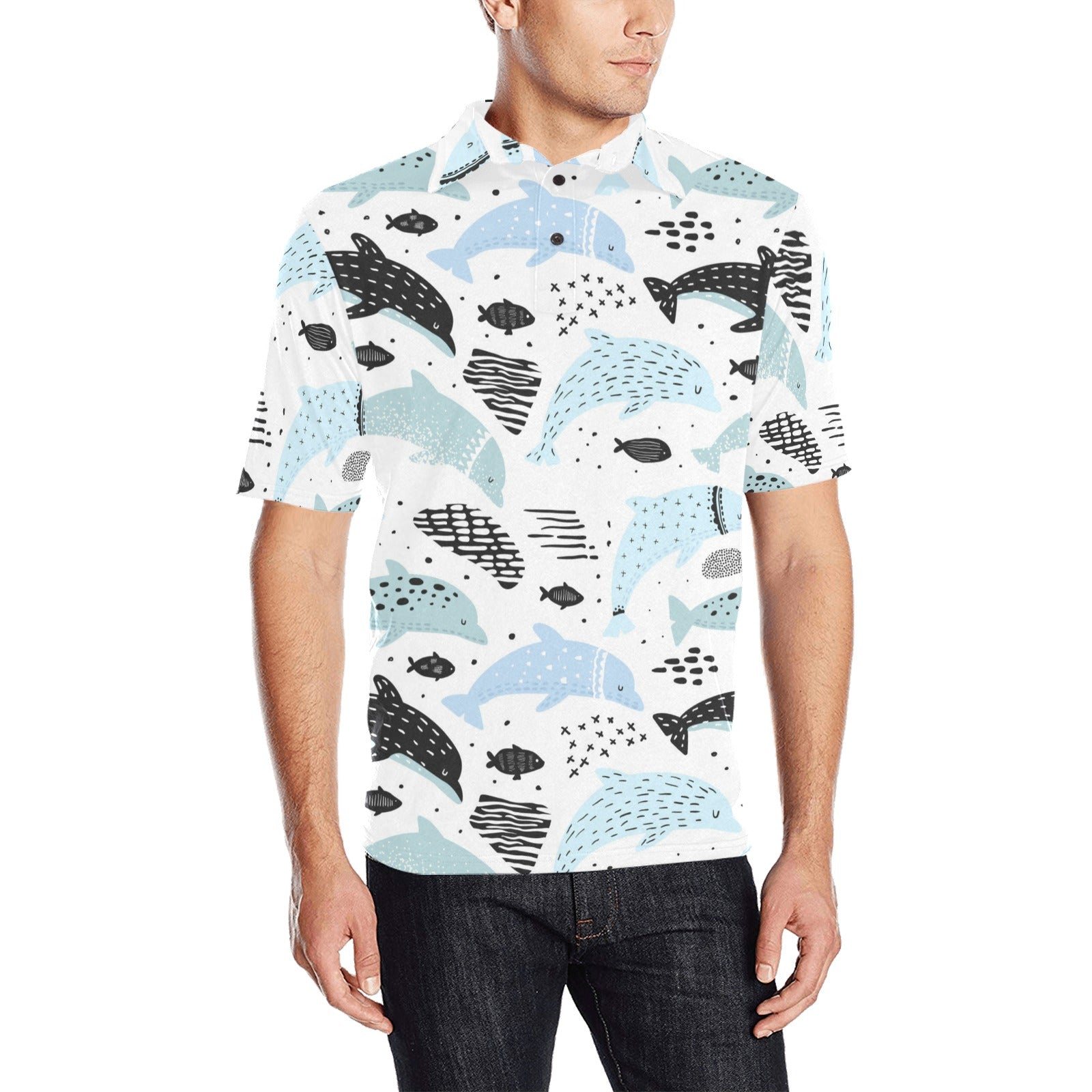 Cute dolphins Childish Style pattern Men's All Over Print Polo Shirt