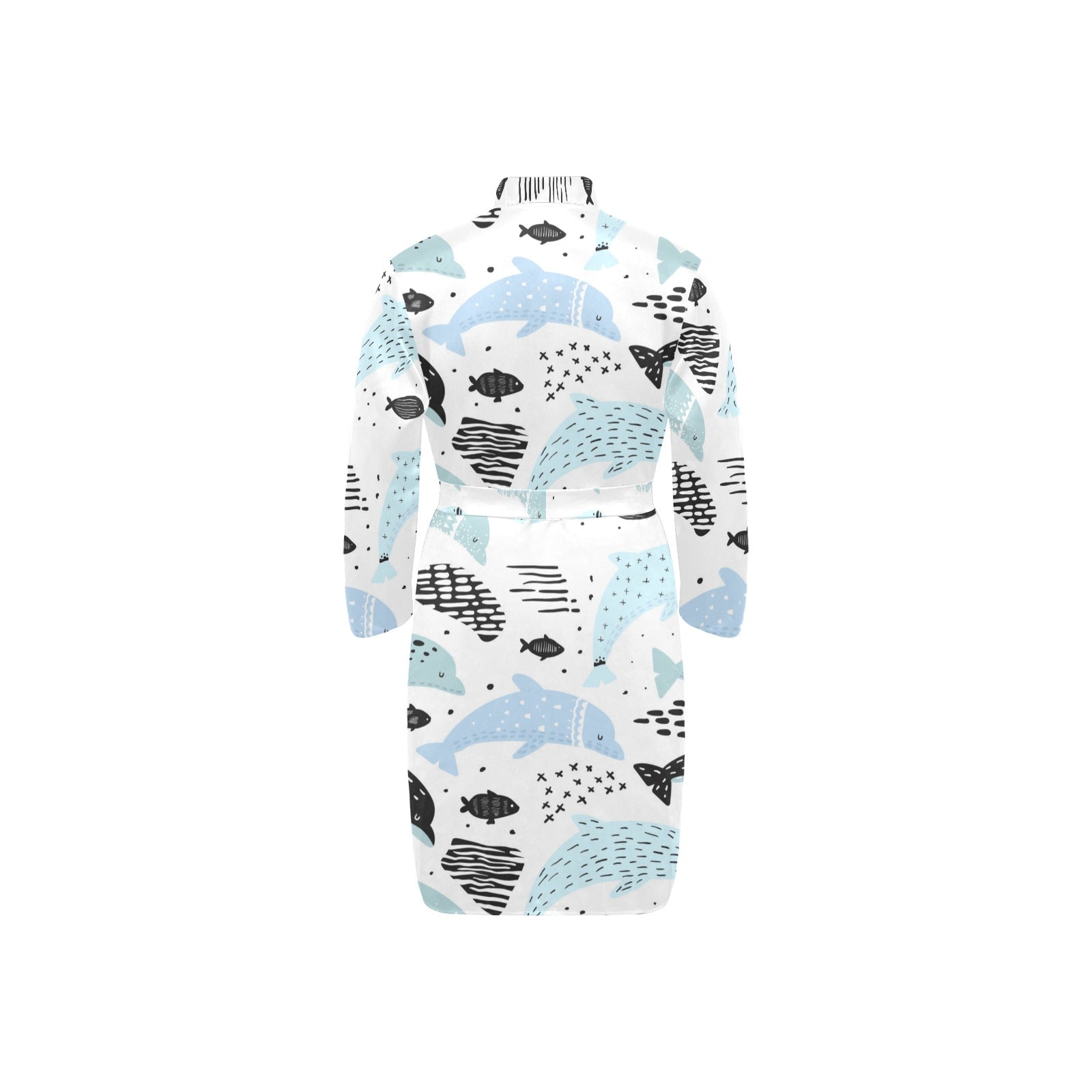 Cute dolphins Childish Style pattern Men's Long Sleeve Belted Night Robe