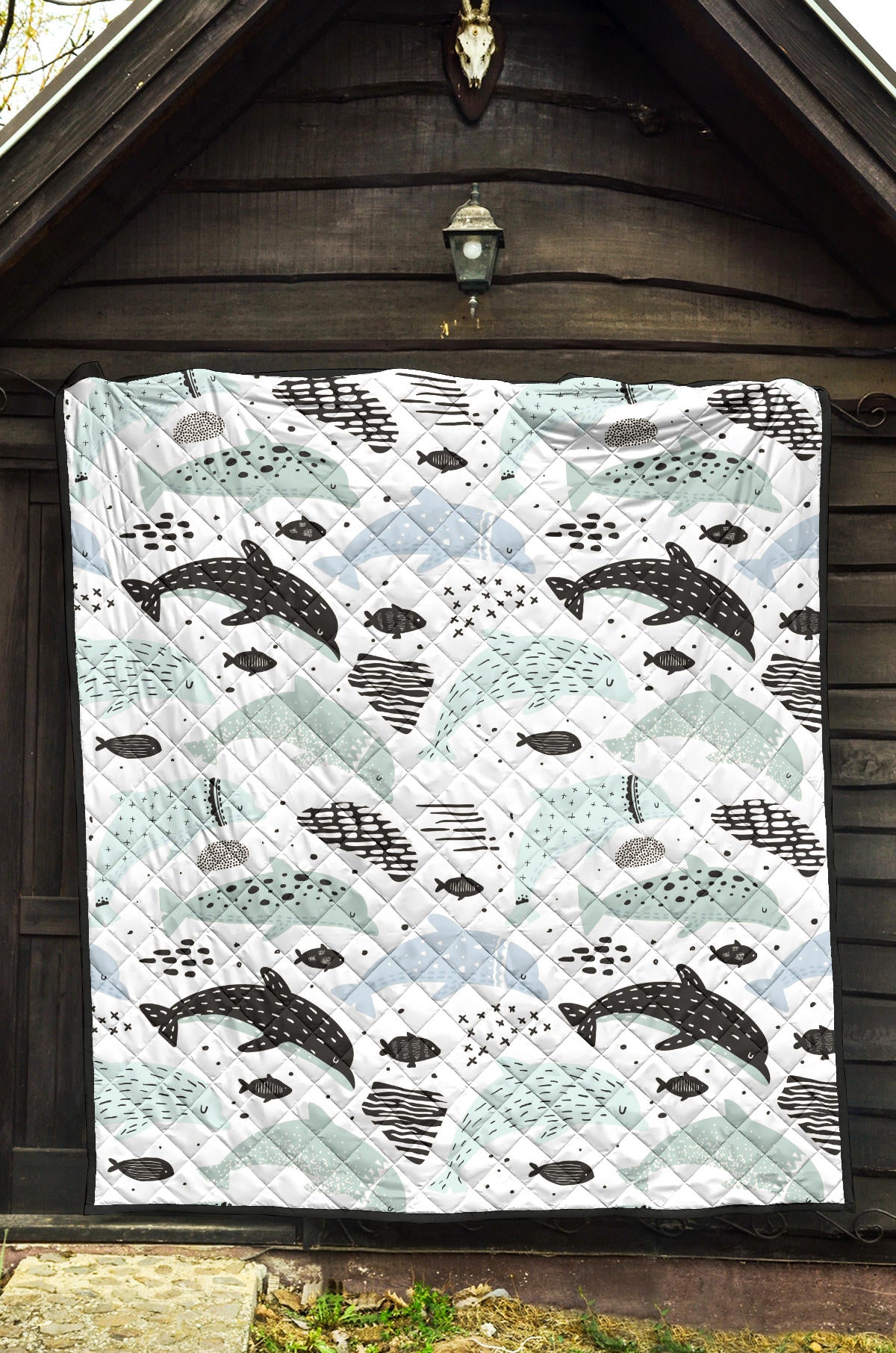 Cute Dolphins Childish Style Pattern Premium Quilt is a uniqued design and limited item. It made to order, hand printed, and sewn with love in our factory.