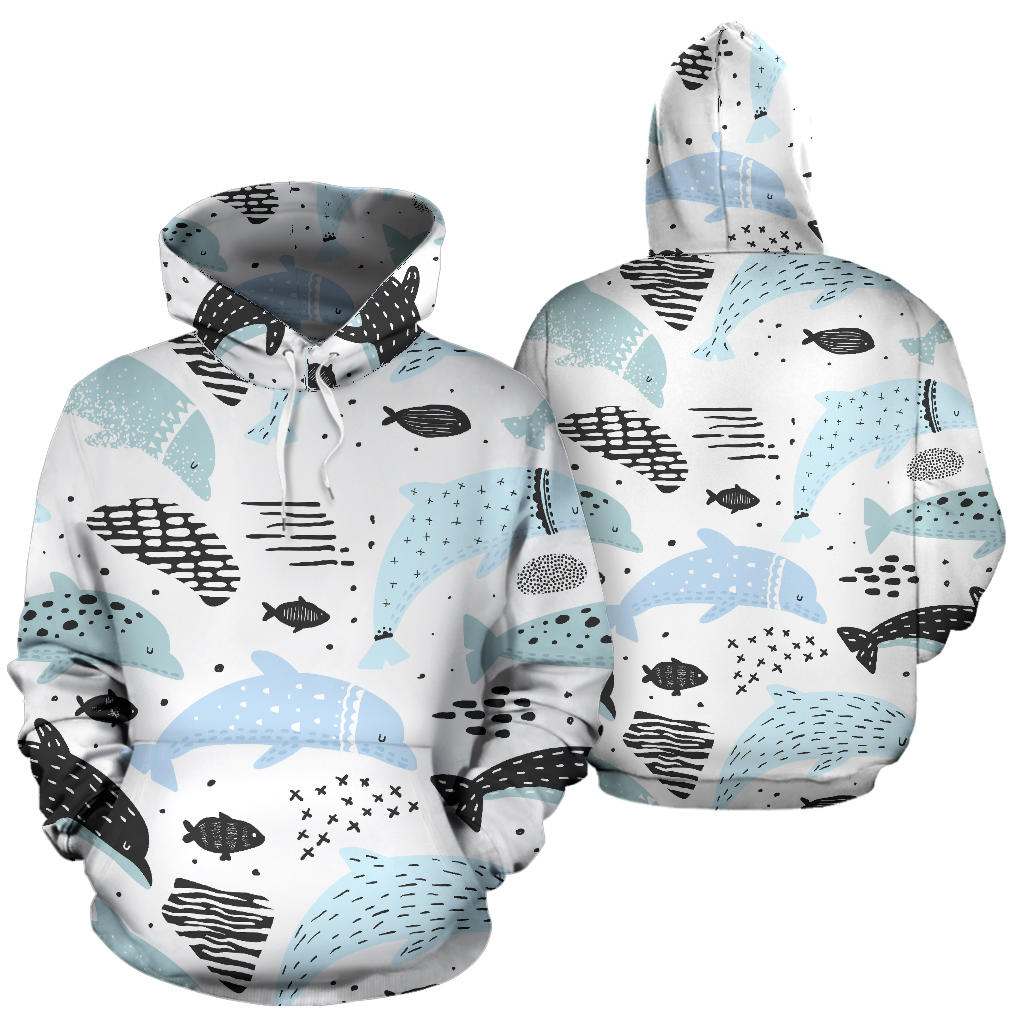 Cute Dolphins Childish Style Pattern Men Women Pullover Hoodie