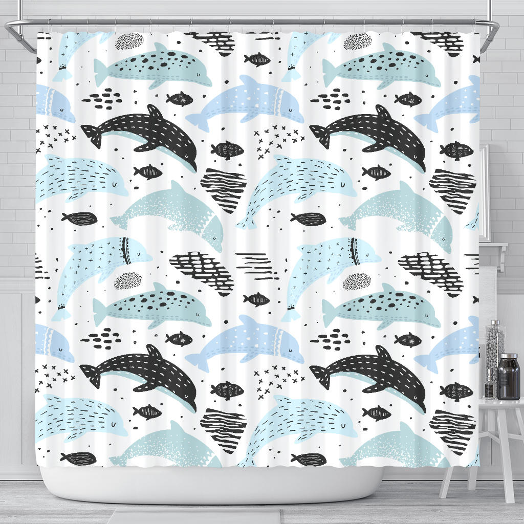 Cute dolphins Childish Style pattern Shower Curtain is a uniqued design and limited item. It made to order, hand printed, and sewn with love in our factory.
