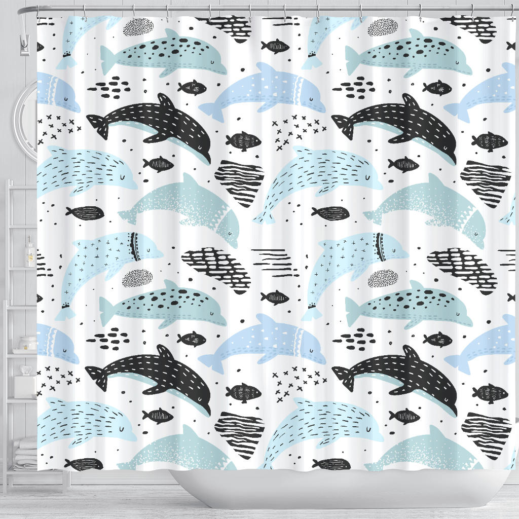 Cute Dolphins Childish Style Pattern Shower Curtain Fulfilled In US