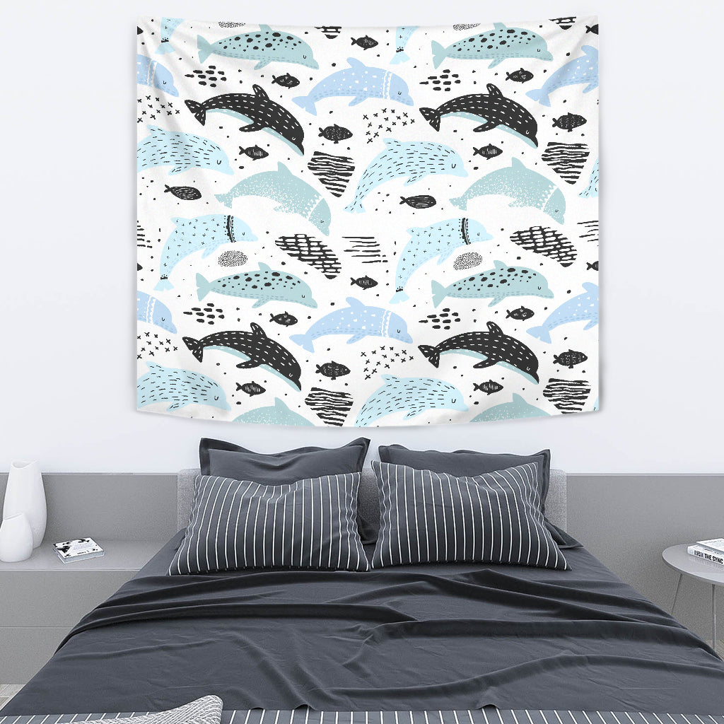 Cute Dolphins Childish Style Pattern Wall Tapestry