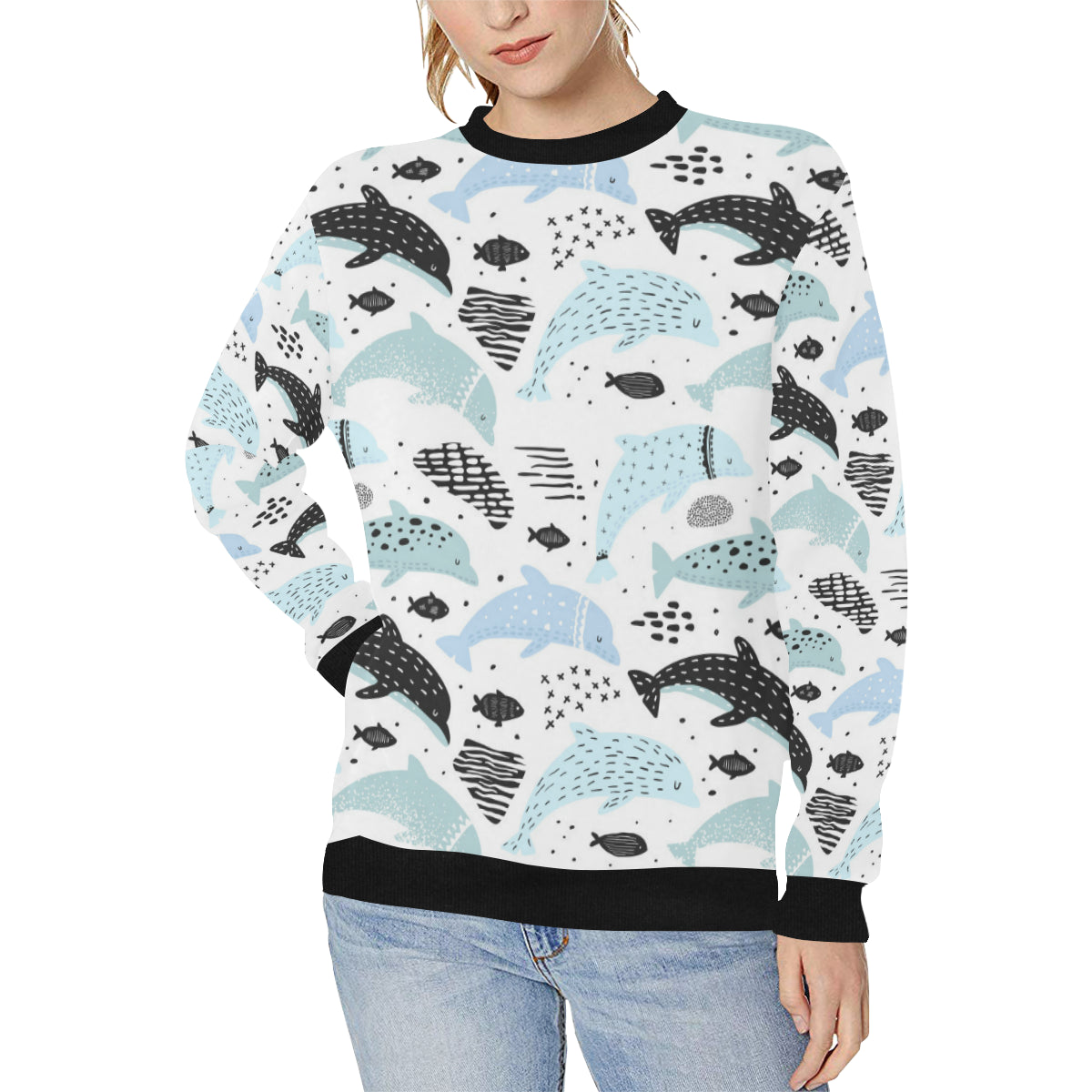 Cute dolphins Childish Style pattern Women's Crew Neck Sweatshirt is a uniqued design and limited item. It made to order, hand printed, and sewn with love in our factory.