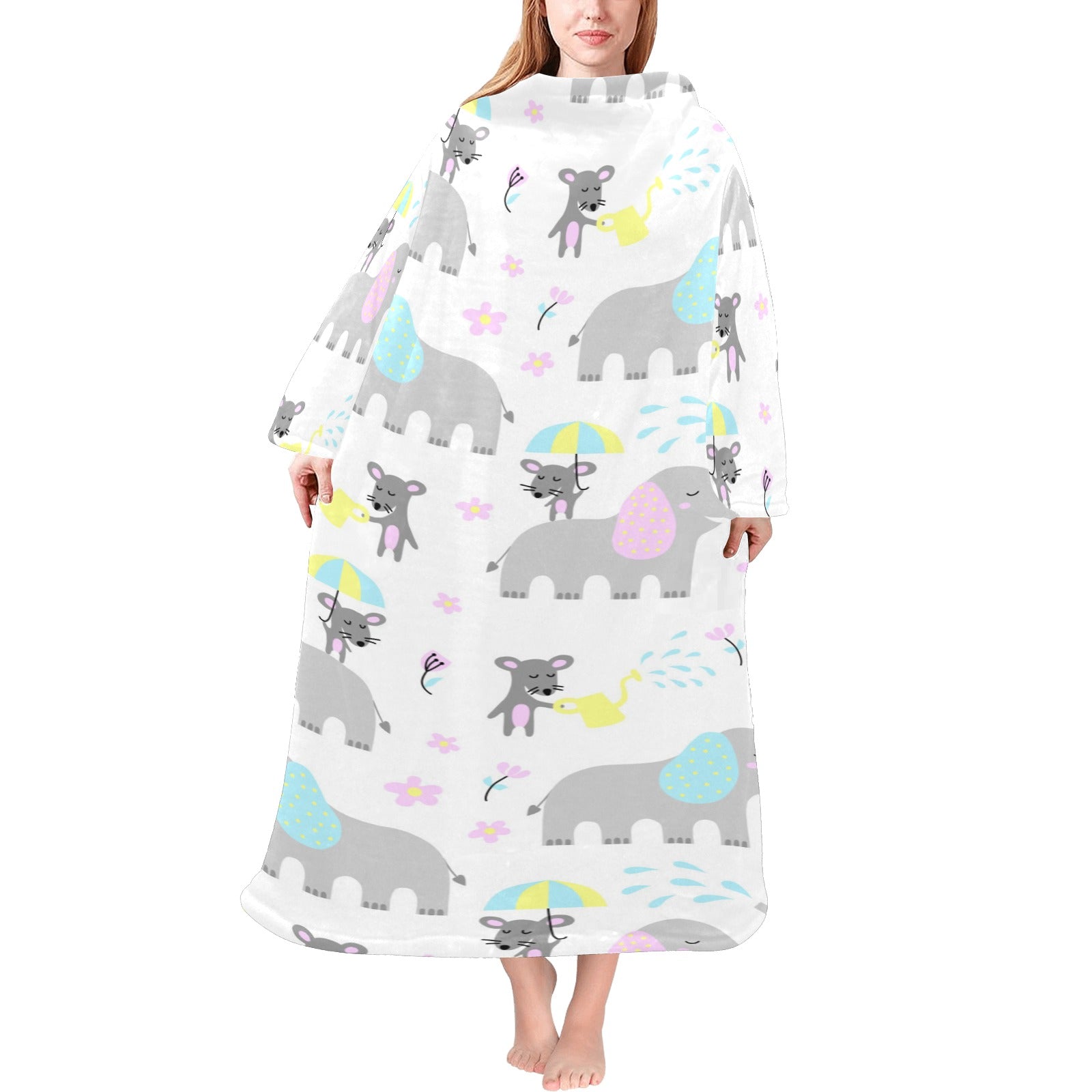 Cute elephant mouse pattern Blanket Robe with Sleeves
