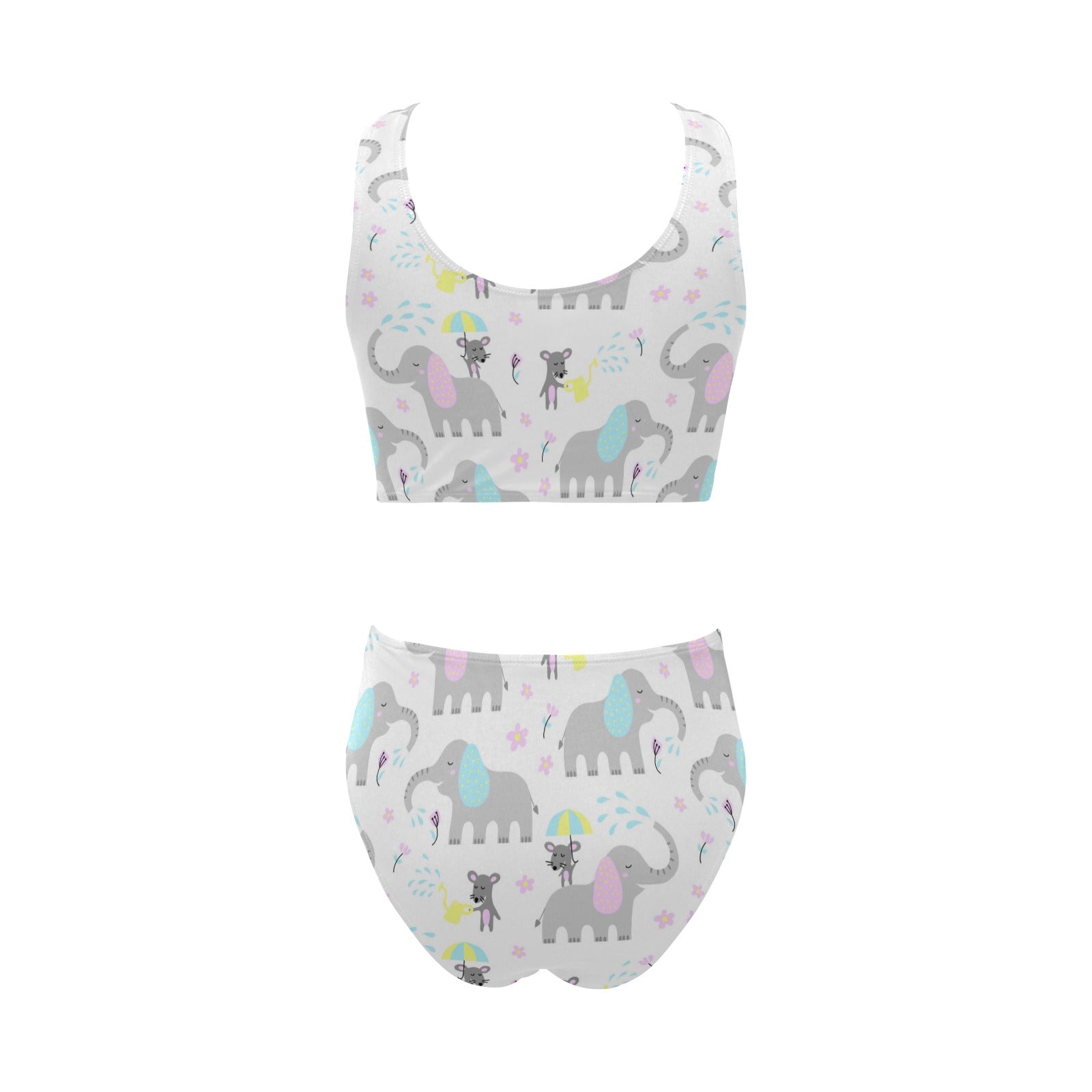 Cute elephant mouse pattern Chest Bowknot High Waisted Bikini Swimsuit