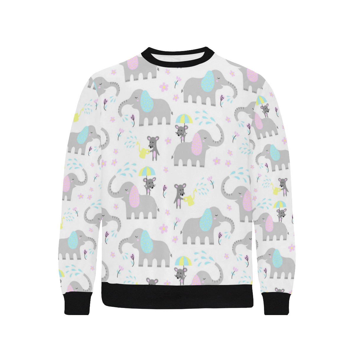 Cute elephant mouse pattern Men's Crew Neck Sweatshirt is a uniqued design and limited item. It made to order, hand printed, and sewn with love in our factory.