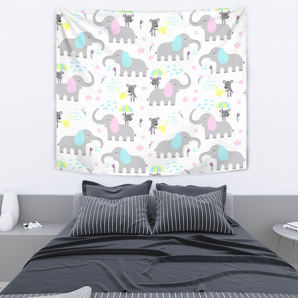 Cute elephant mouse pattern Tapestry is a uniqued design and limited item. It made to order, hand printed, and sewn with love in our factory.