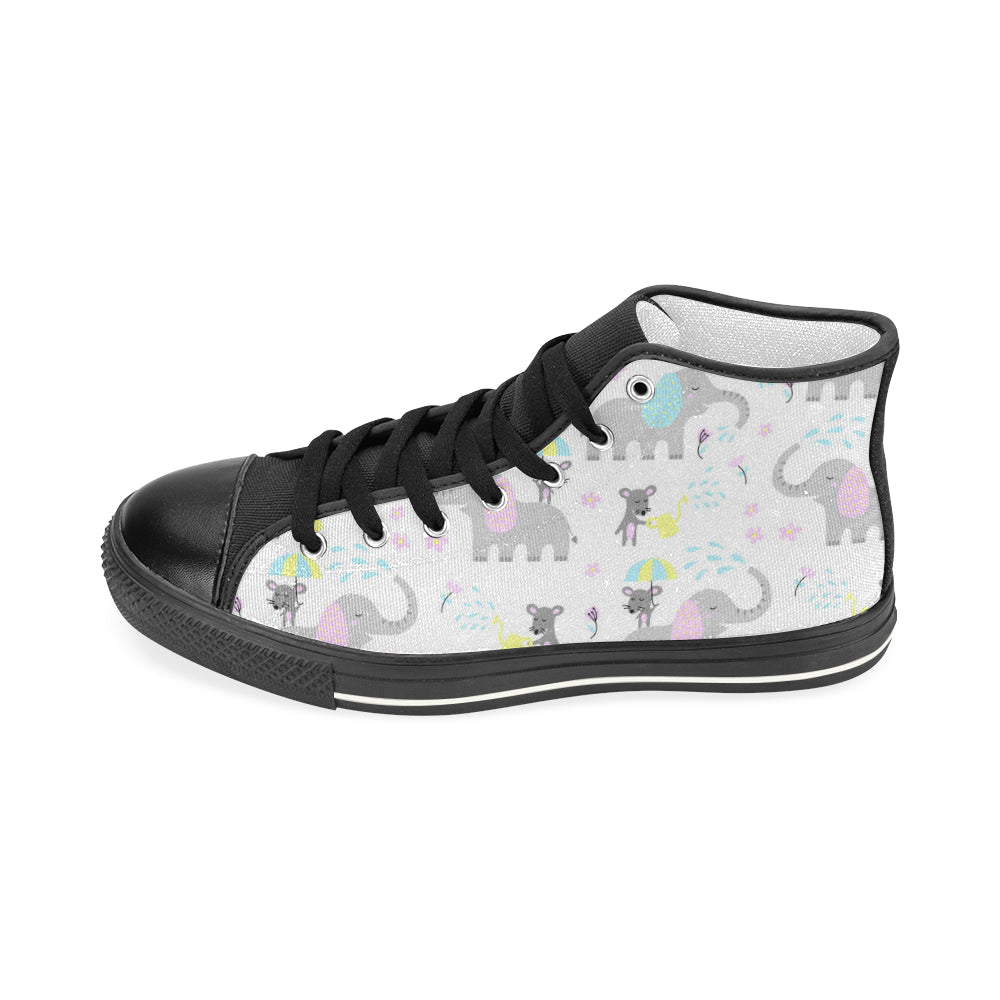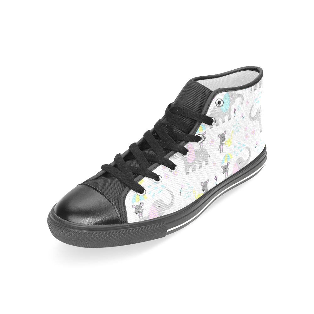 Cute elephant mouse pattern Women's High Top Canvas Shoes Black
