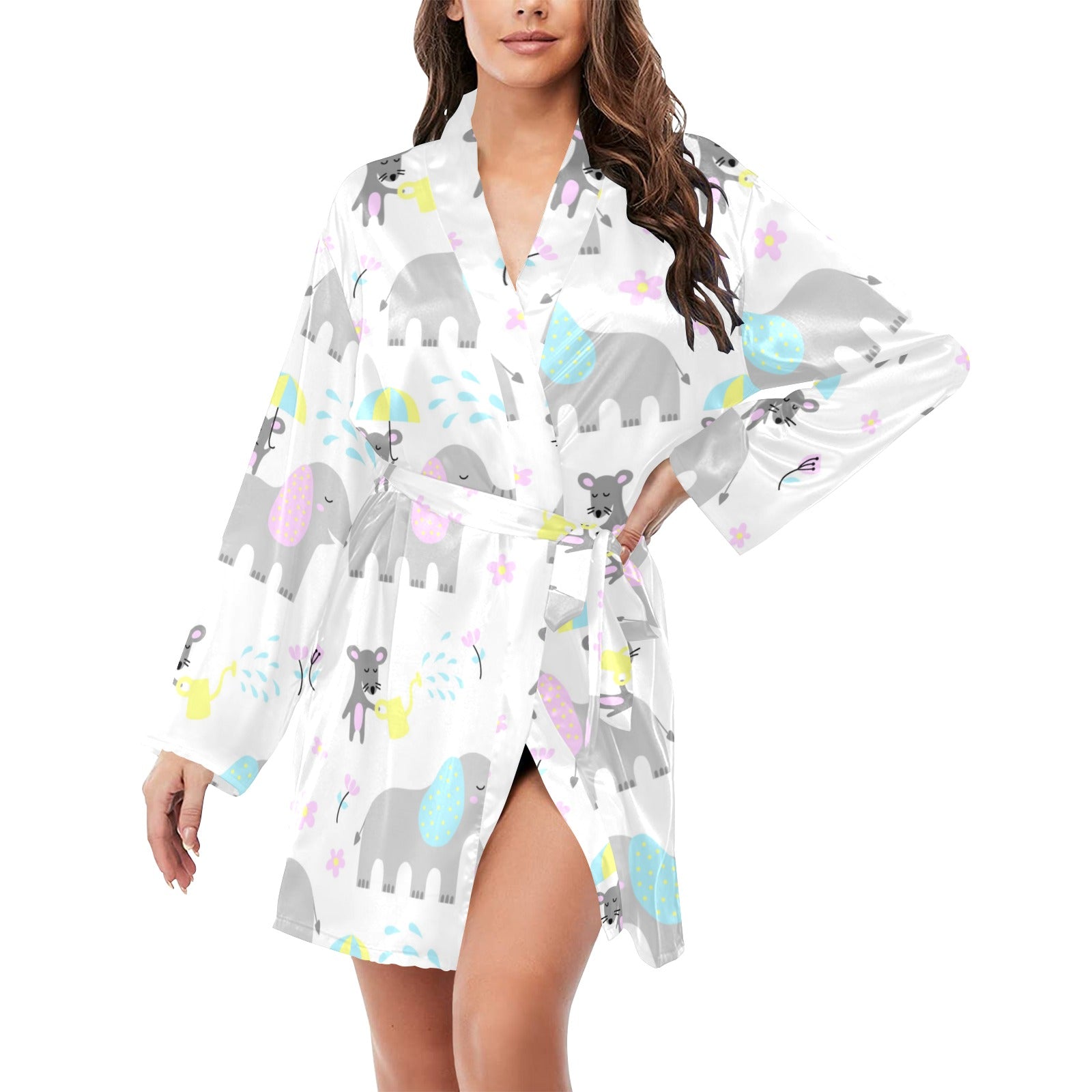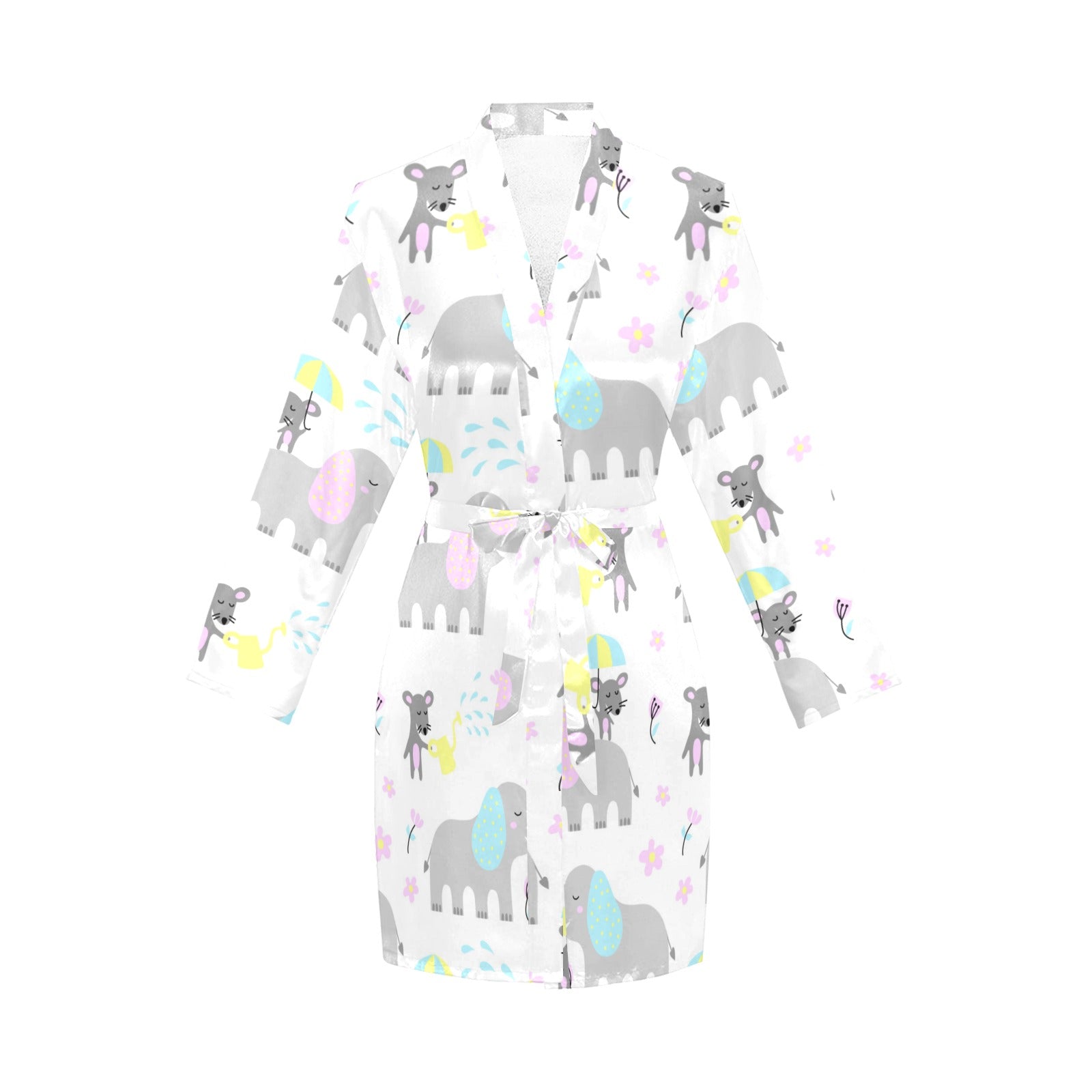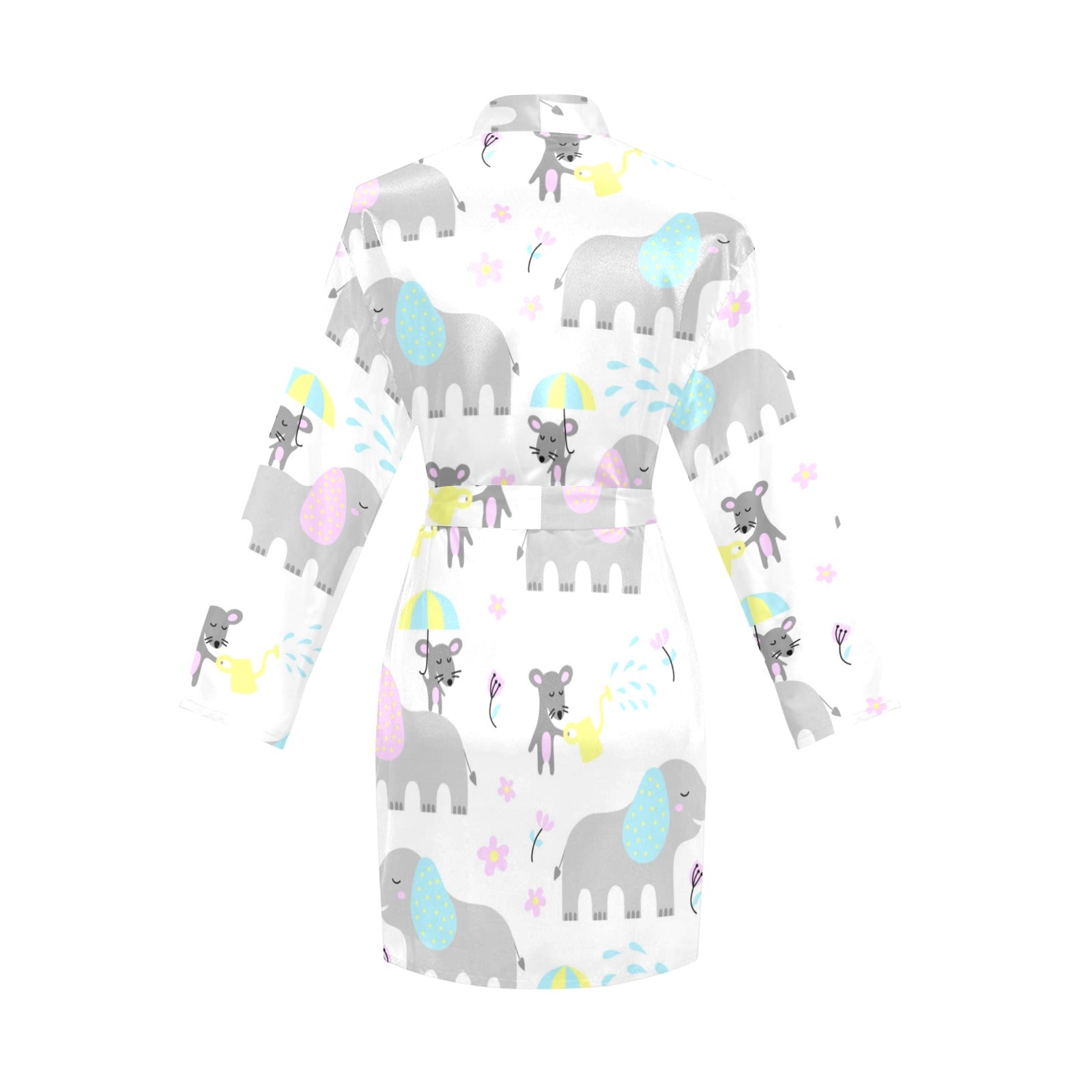 Cute elephant mouse pattern Women's Long Sleeve Belted Night Robe