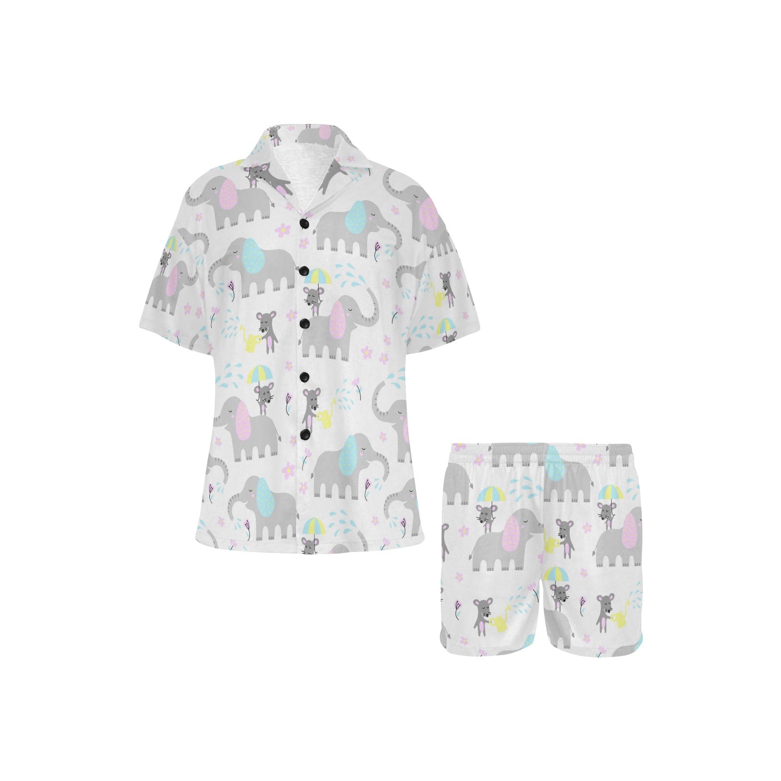Cute elephant mouse pattern Women's V-Neck Short Pajama Set