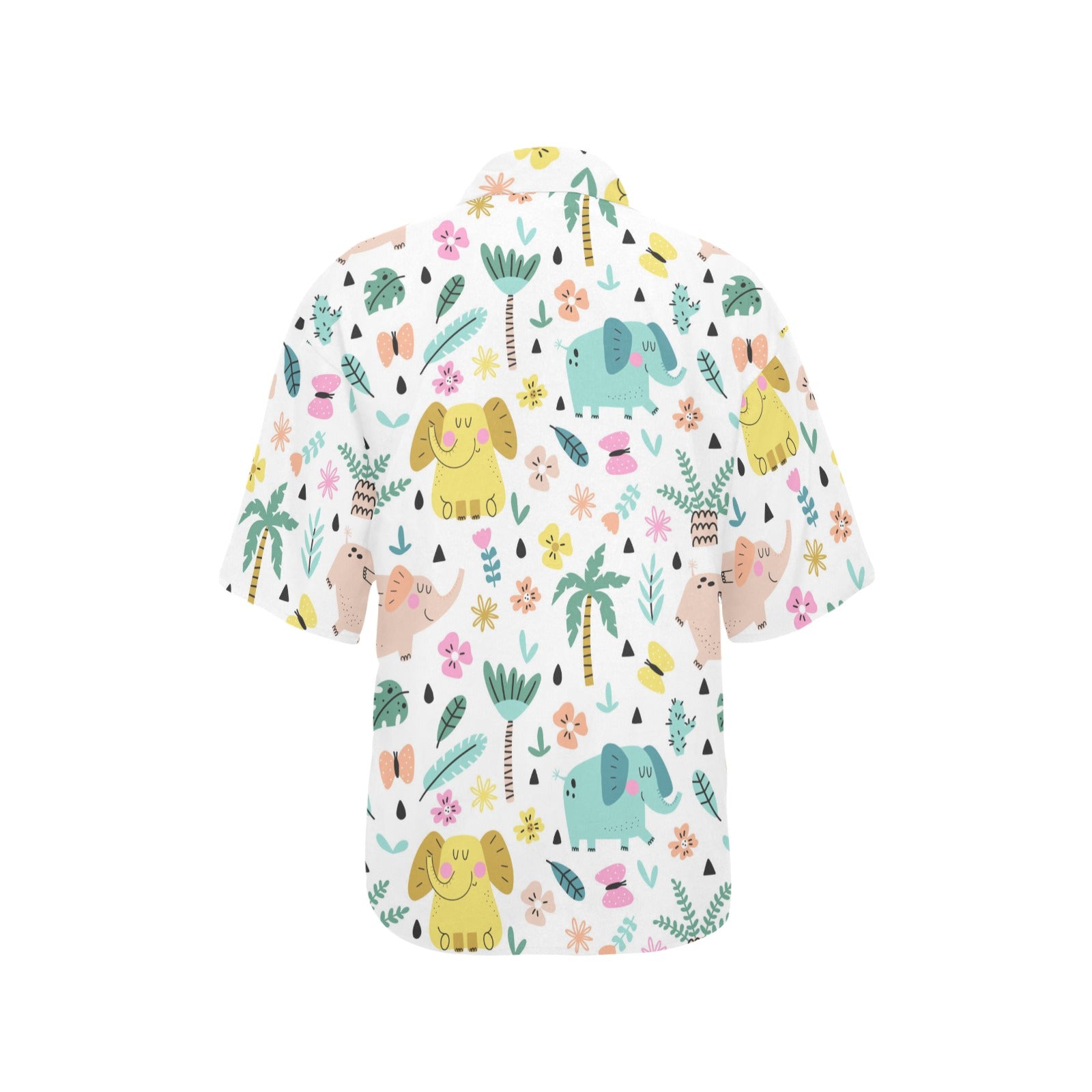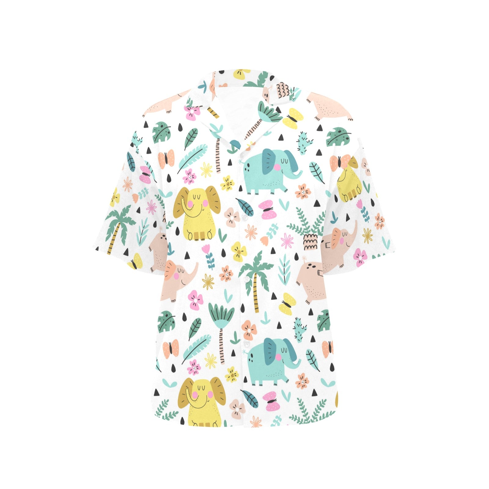 Cute elephants palm tree flower butterfly pattern Women's All Over Print Hawaiian Shirt