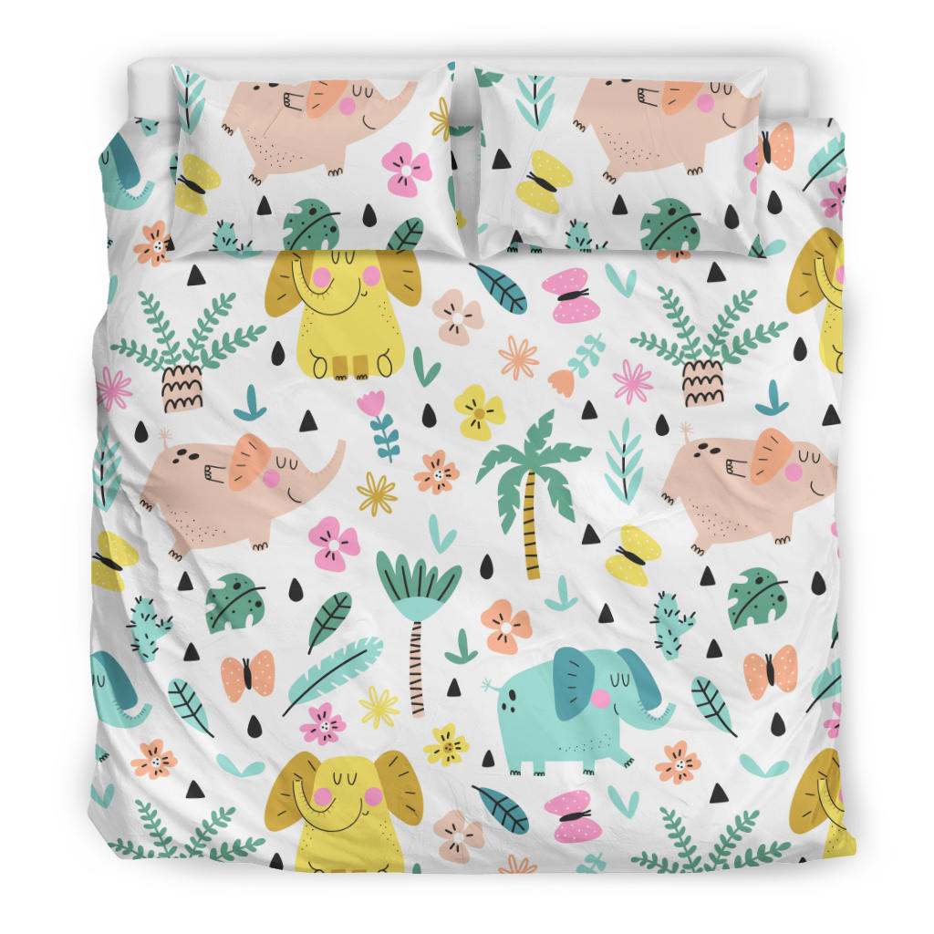 Cute elephants palm tree flower butterfly pattern Bedding Set is a uniqued design and limited item. It made to order, hand printed, and sewn with love in our factory.