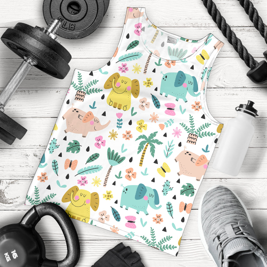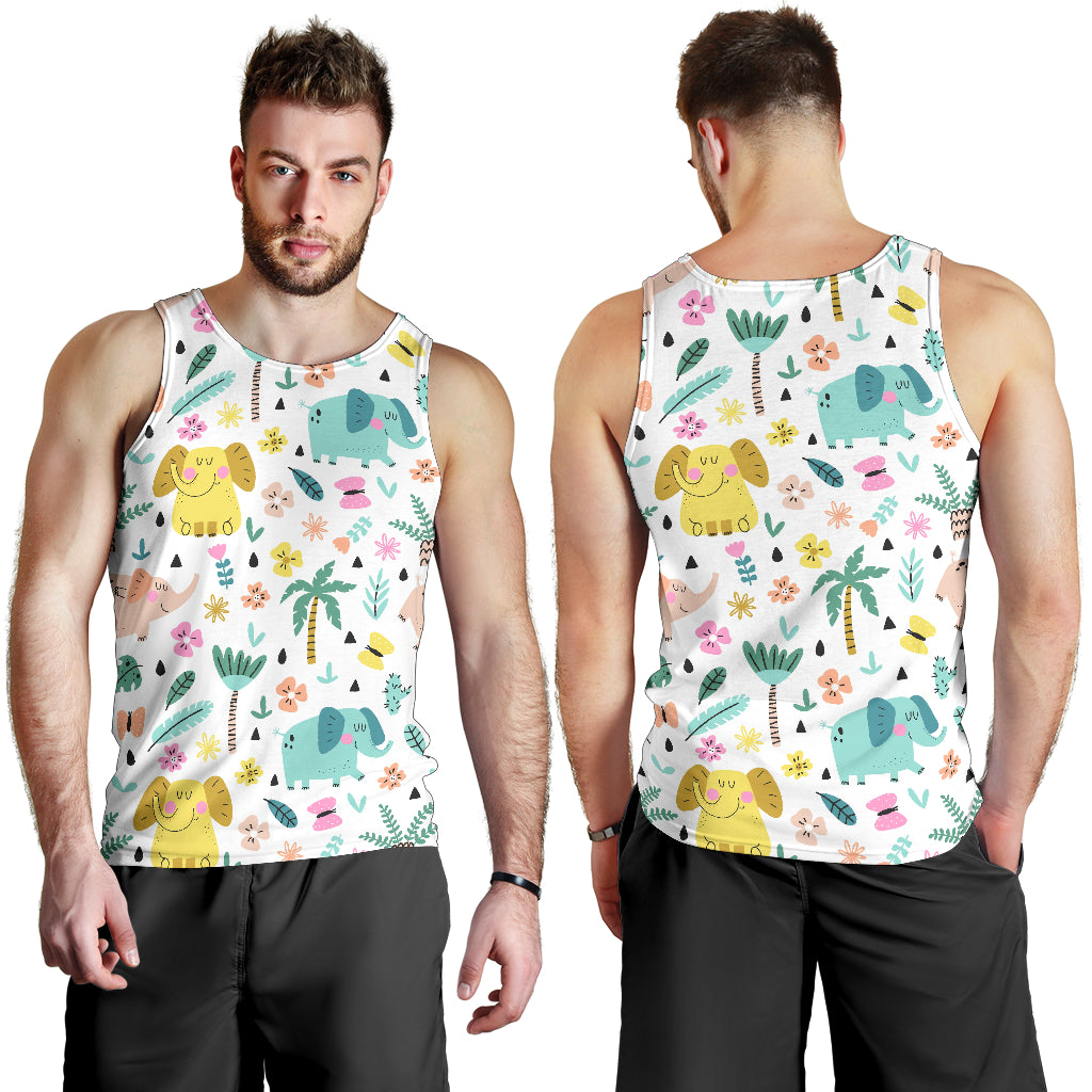 Cute elephants palm tree flower butterfly pattern Men Tank Top
