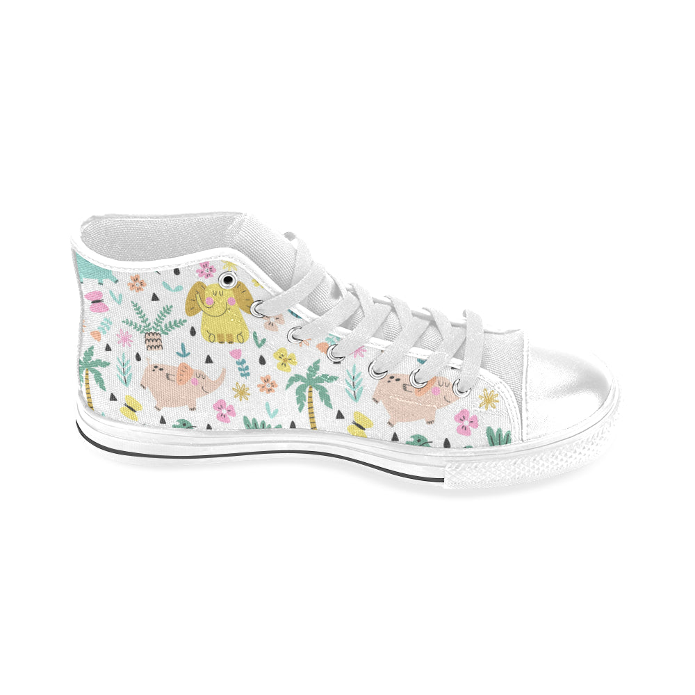 Cute elephants palm tree flower butterfly pattern Men's High Top Canvas Shoes White