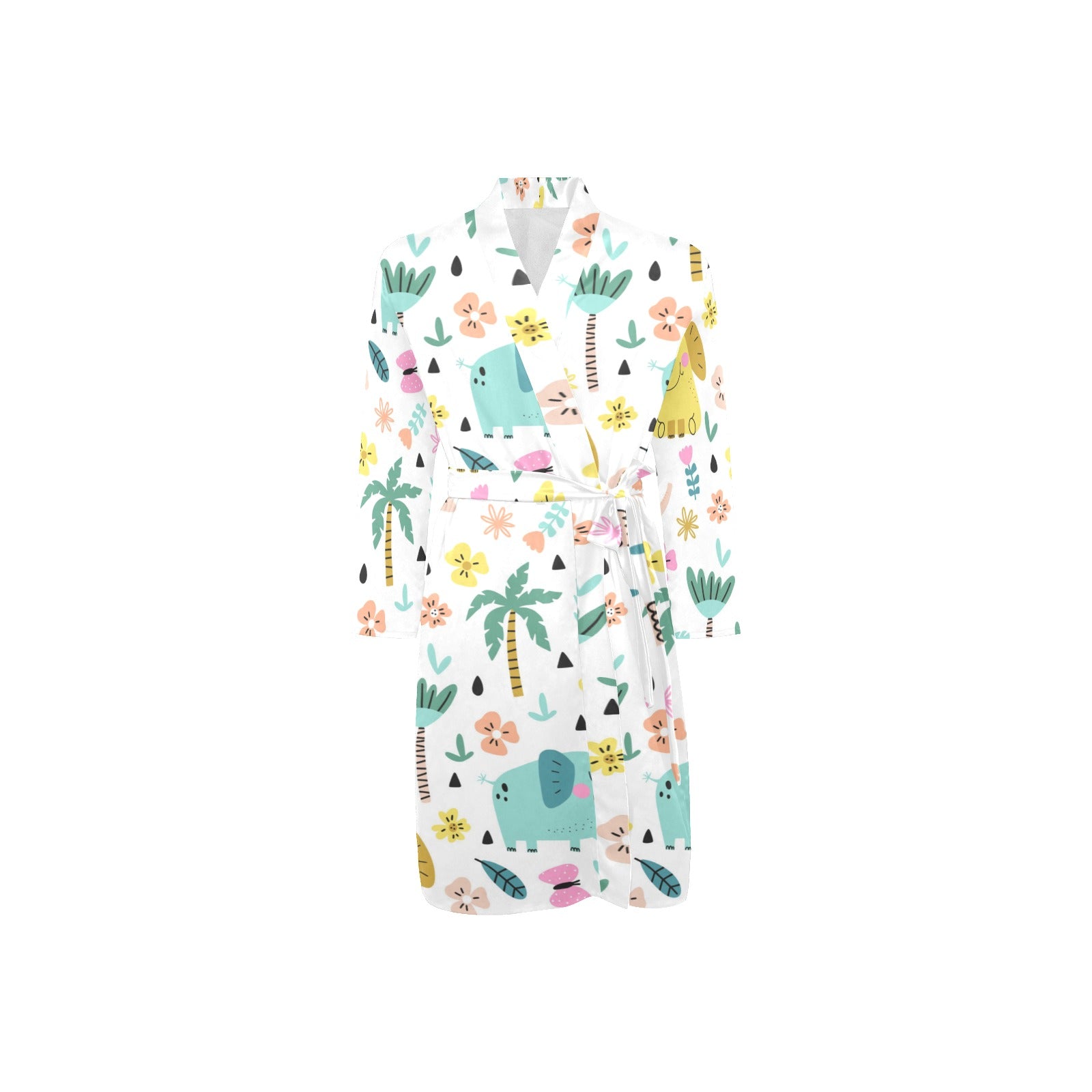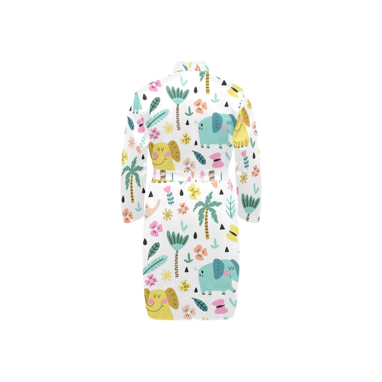 Cute elephants palm tree flower butterfly pattern Men's Long Sleeve Belted Night Robe