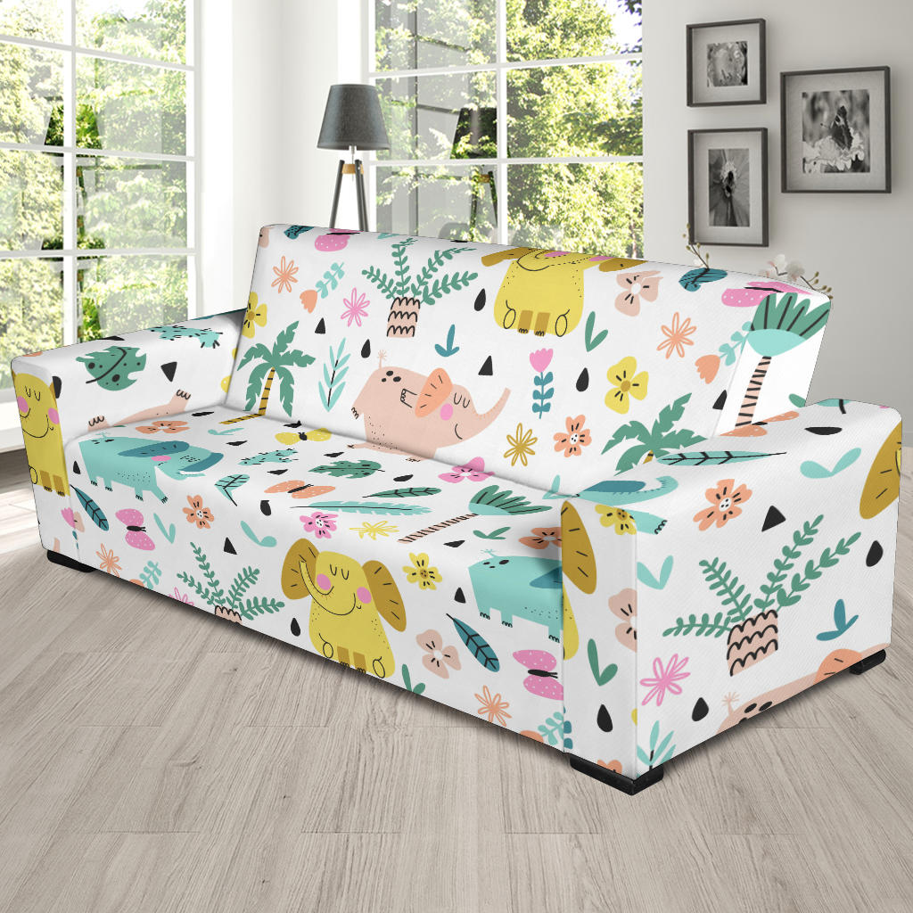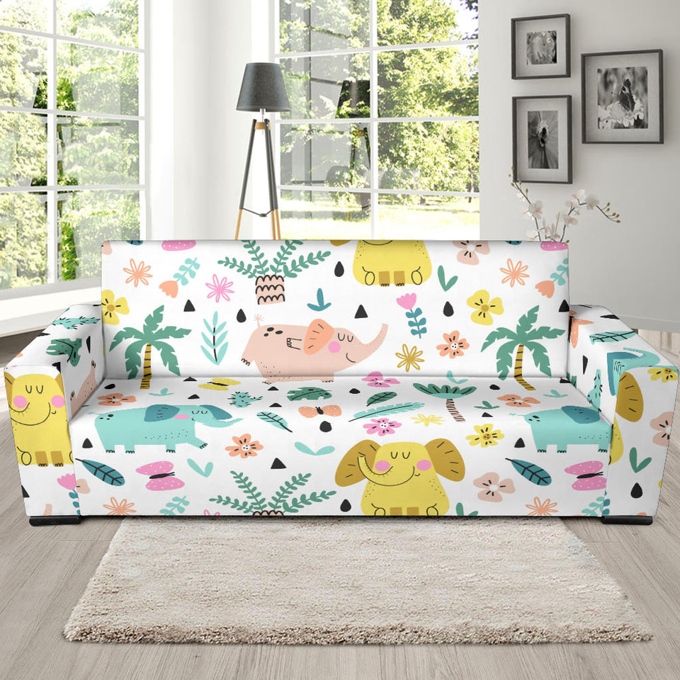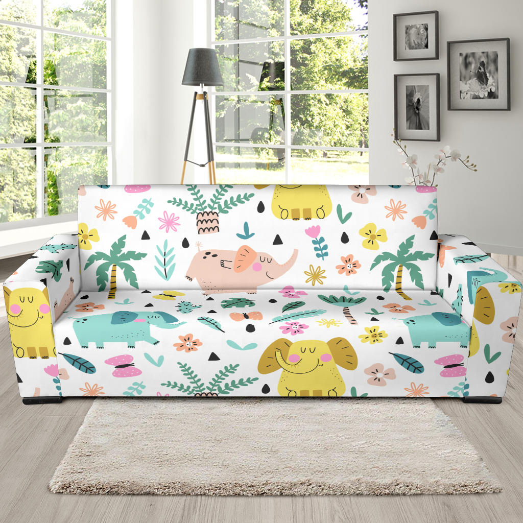 Cute elephants palm tree flower butterfly pattern Sofa Slipcover is a uniqued design and limited item. It made to order, hand printed, and sewn with love in our factory.