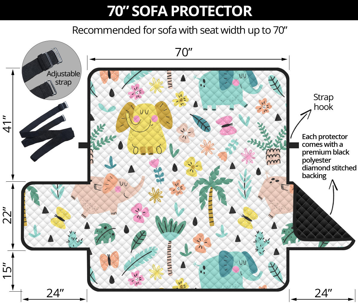 Cute elephants palm tree flower butterfly pattern Sofa Cover Protector