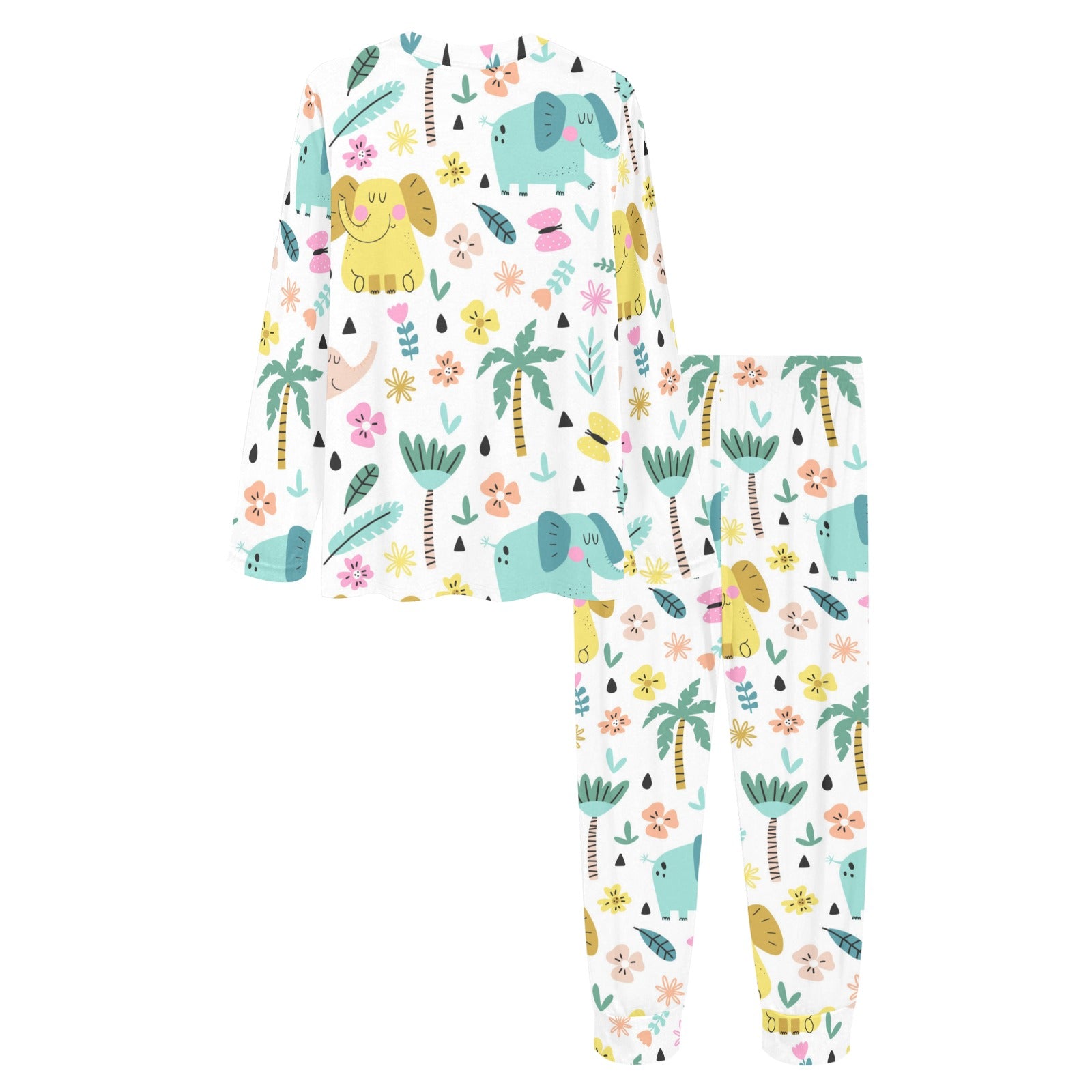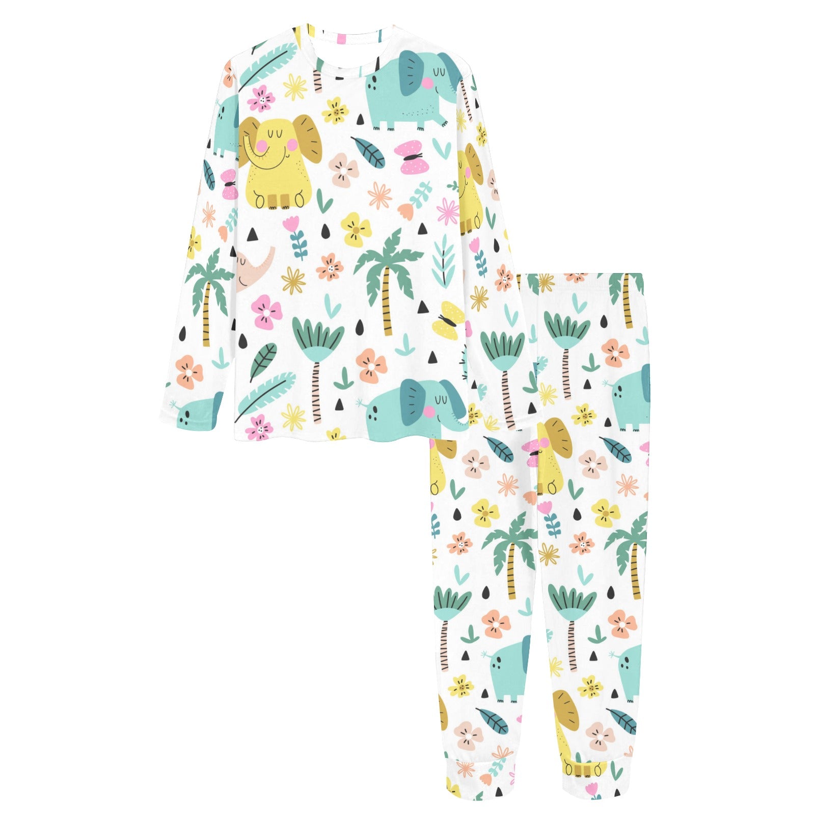Cute elephants palm tree flower butterfly pattern Women's All Over Print Pajama Set