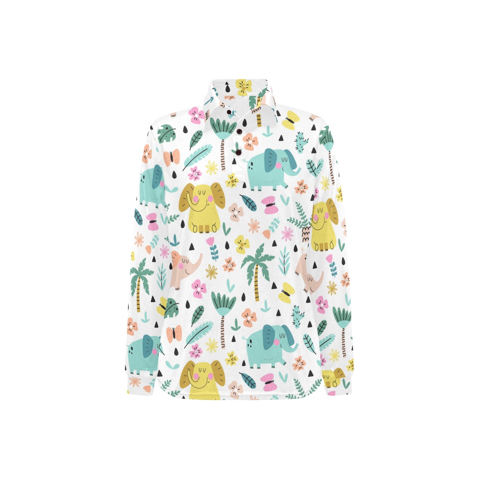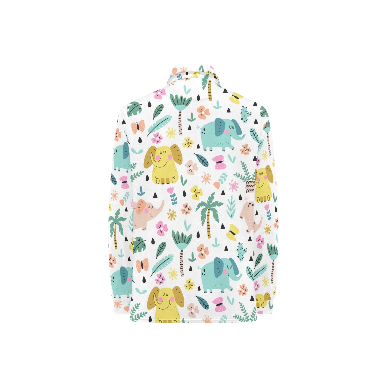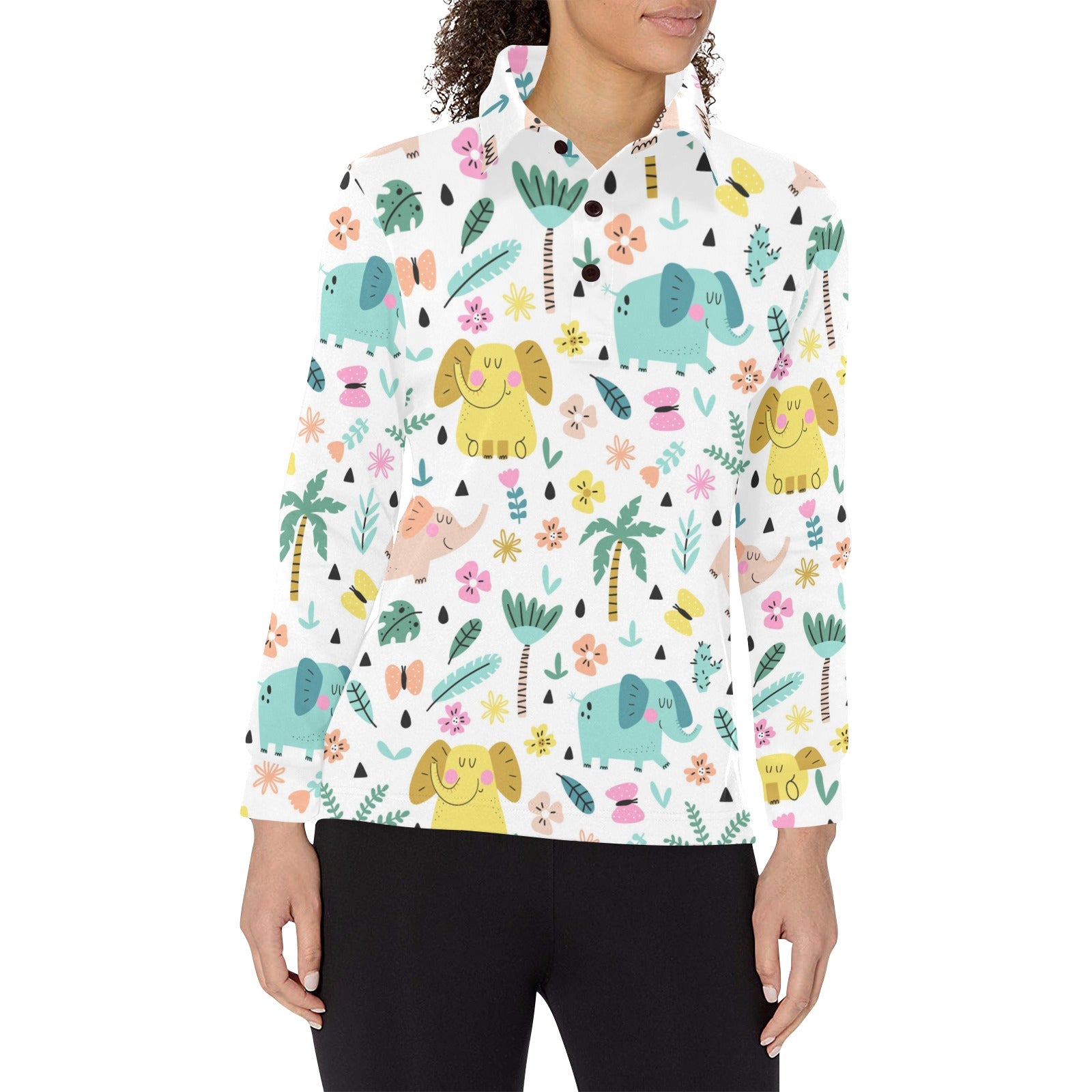 Cute elephants palm tree flower butterfly pattern Women's Long Sleeve Polo Shirt