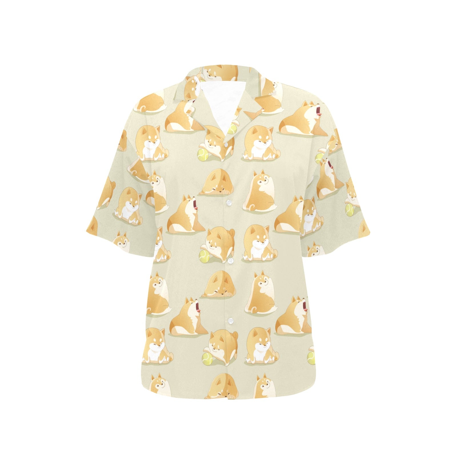 Cute fat shiba inu dog pattern Women's All Over Print Hawaiian Shirt