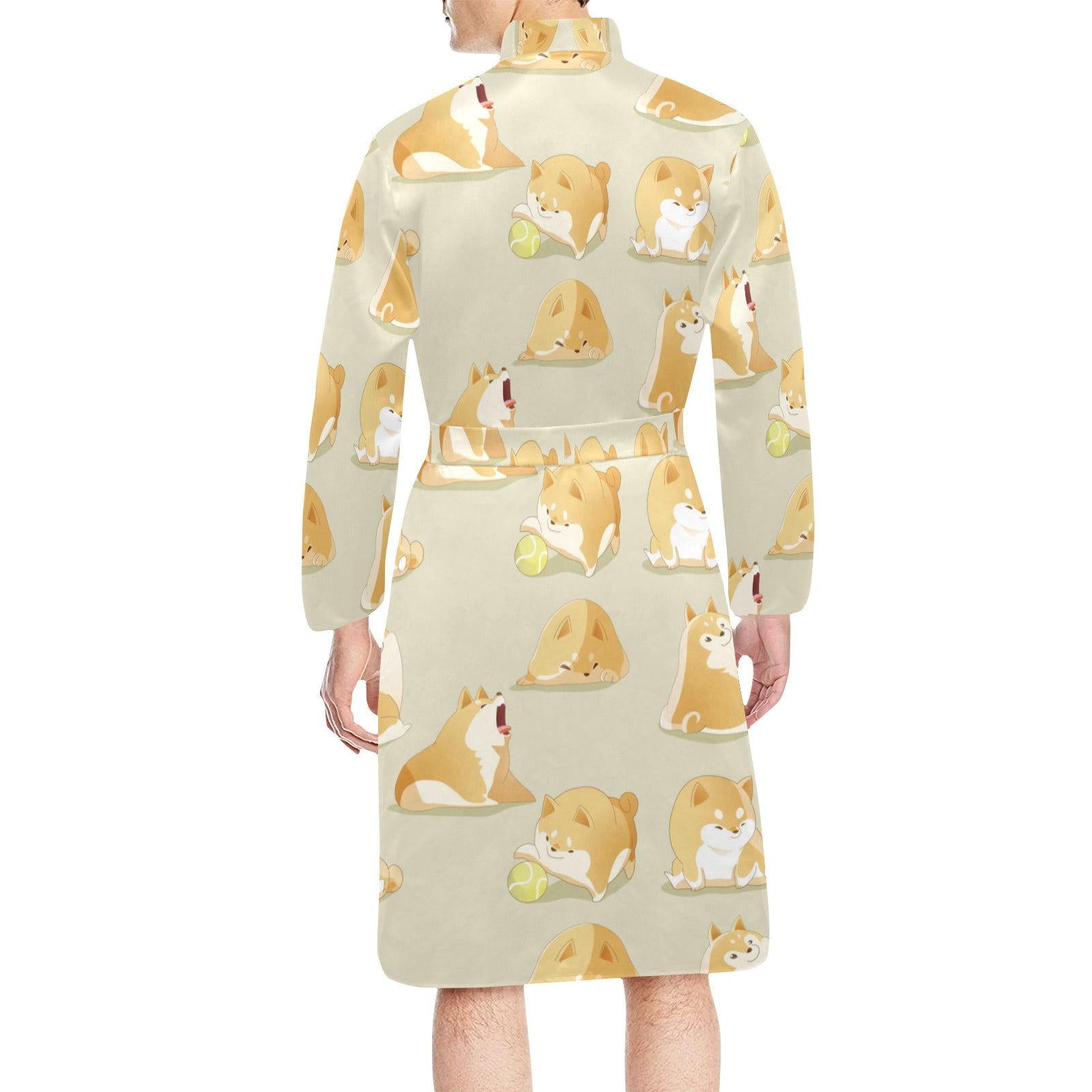 Cute fat shiba inu dog pattern Men's Long Sleeve Belted Night Robe
