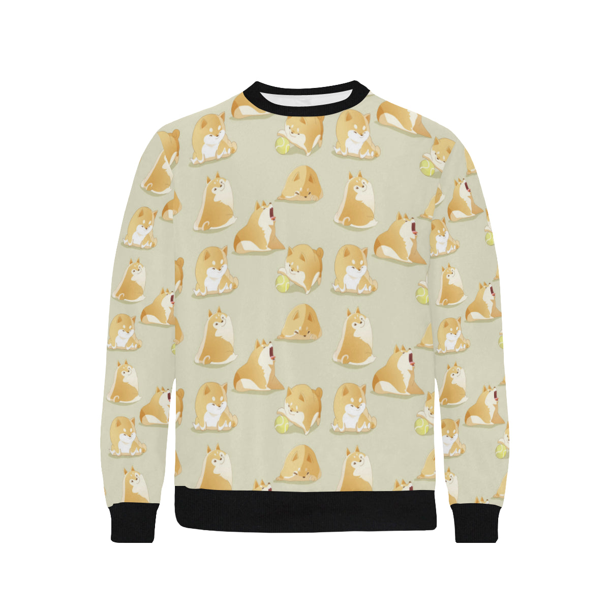 Cute fat shiba inu dog pattern Men's Crew Neck Sweatshirt