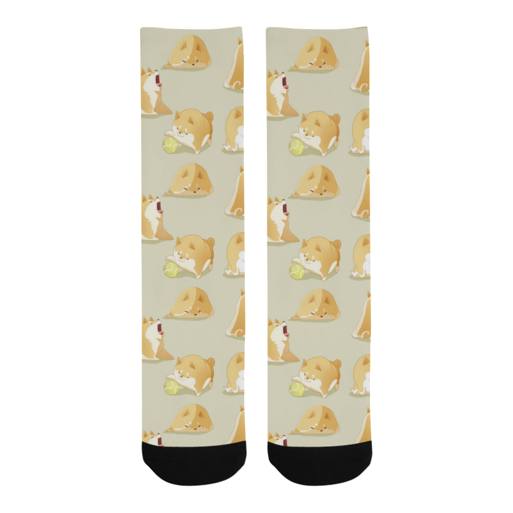 Cute fat shiba inu dog pattern Crew Socks are uniqued design and limited item. It made to order, hand printed, and sewn with love in our factory.