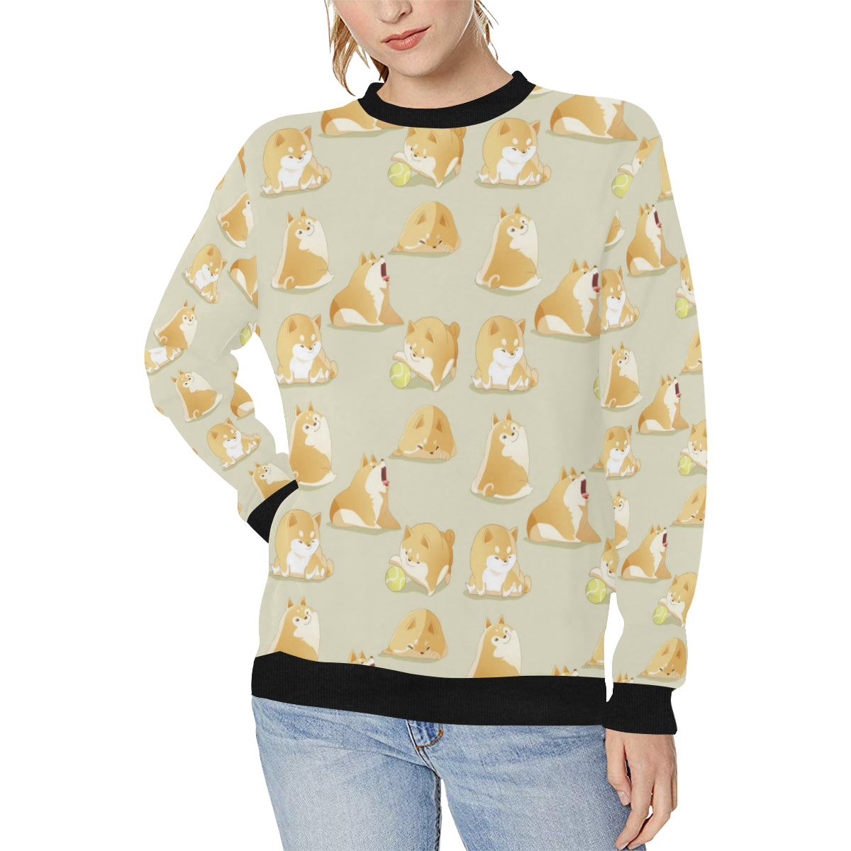 Cute fat shiba inu dog pattern Women's Crew Neck Sweatshirt