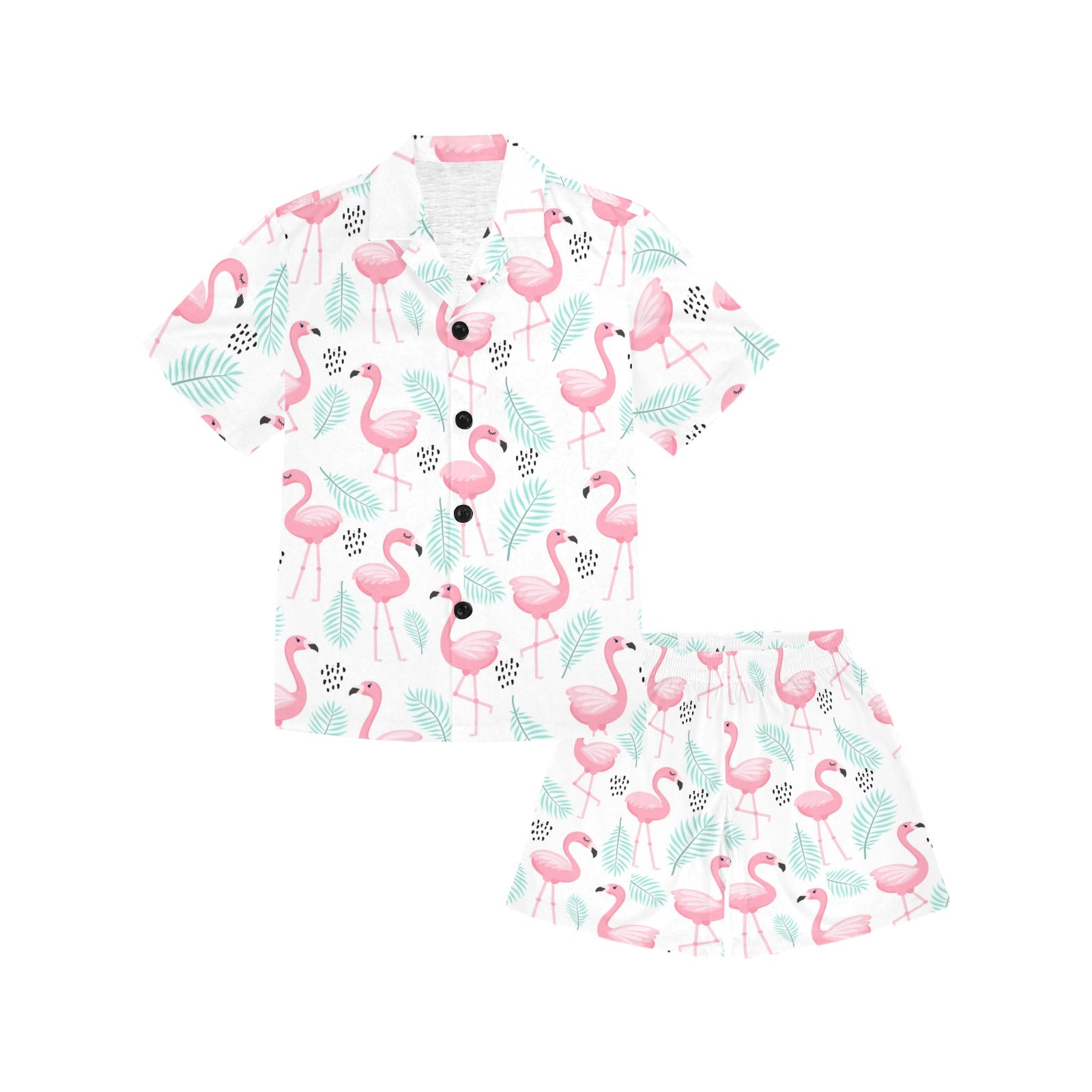 Cute flamingo pattern Kids' Boys' Girls' V-Neck Short Pajama Set
