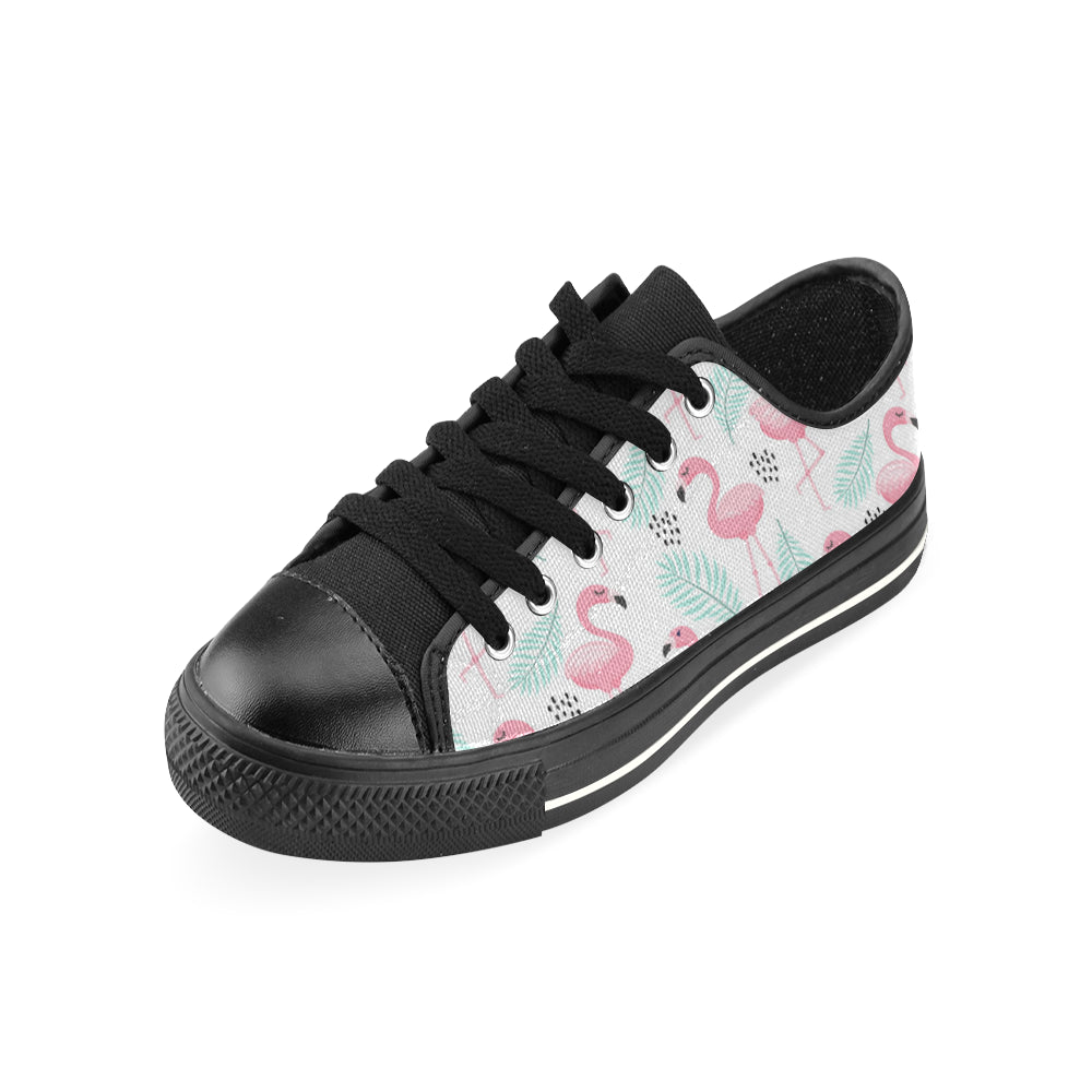 Cute flamingo pattern Men's Low Top Canvas Shoes Black
