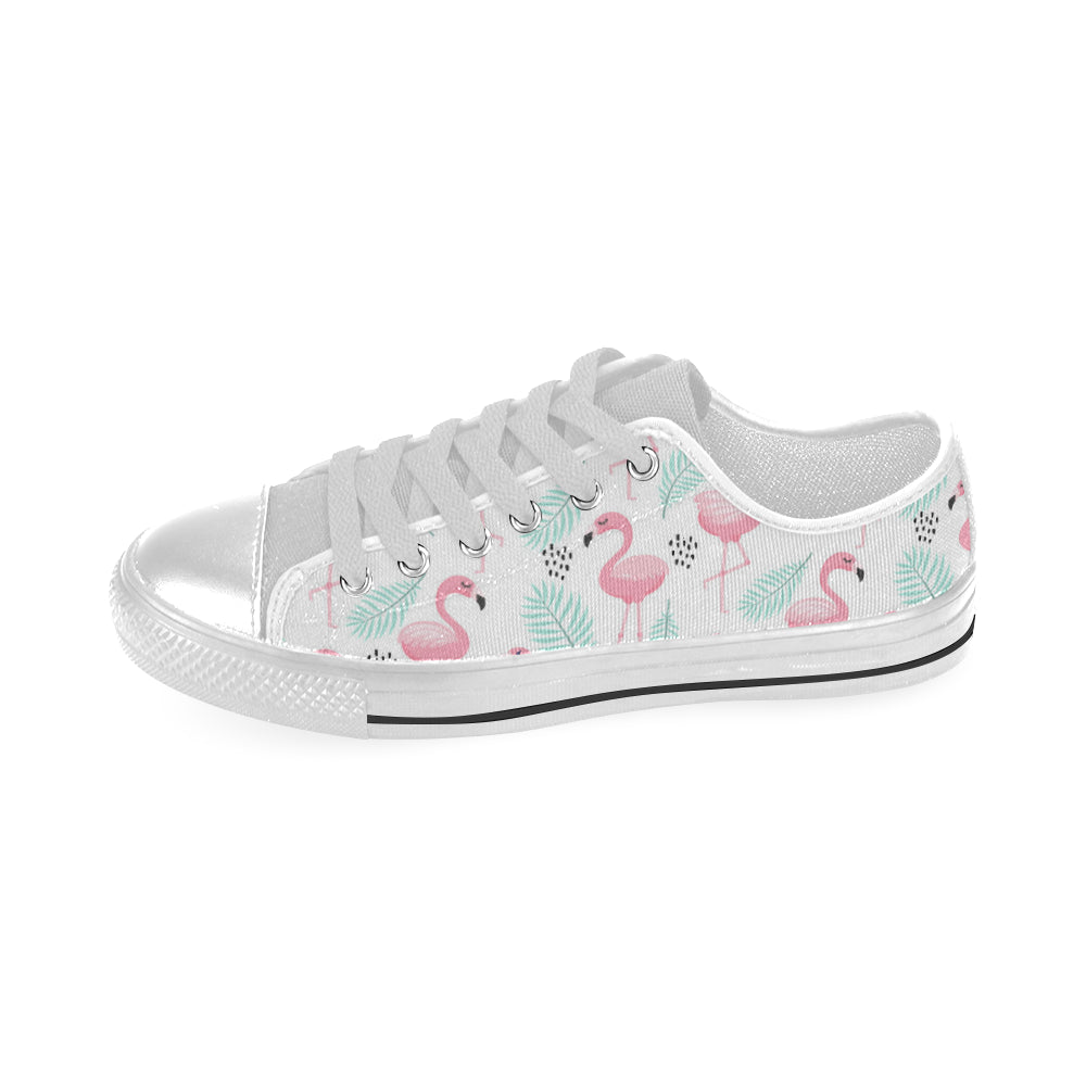 Cute flamingo pattern Men's Low Top Canvas Shoes White