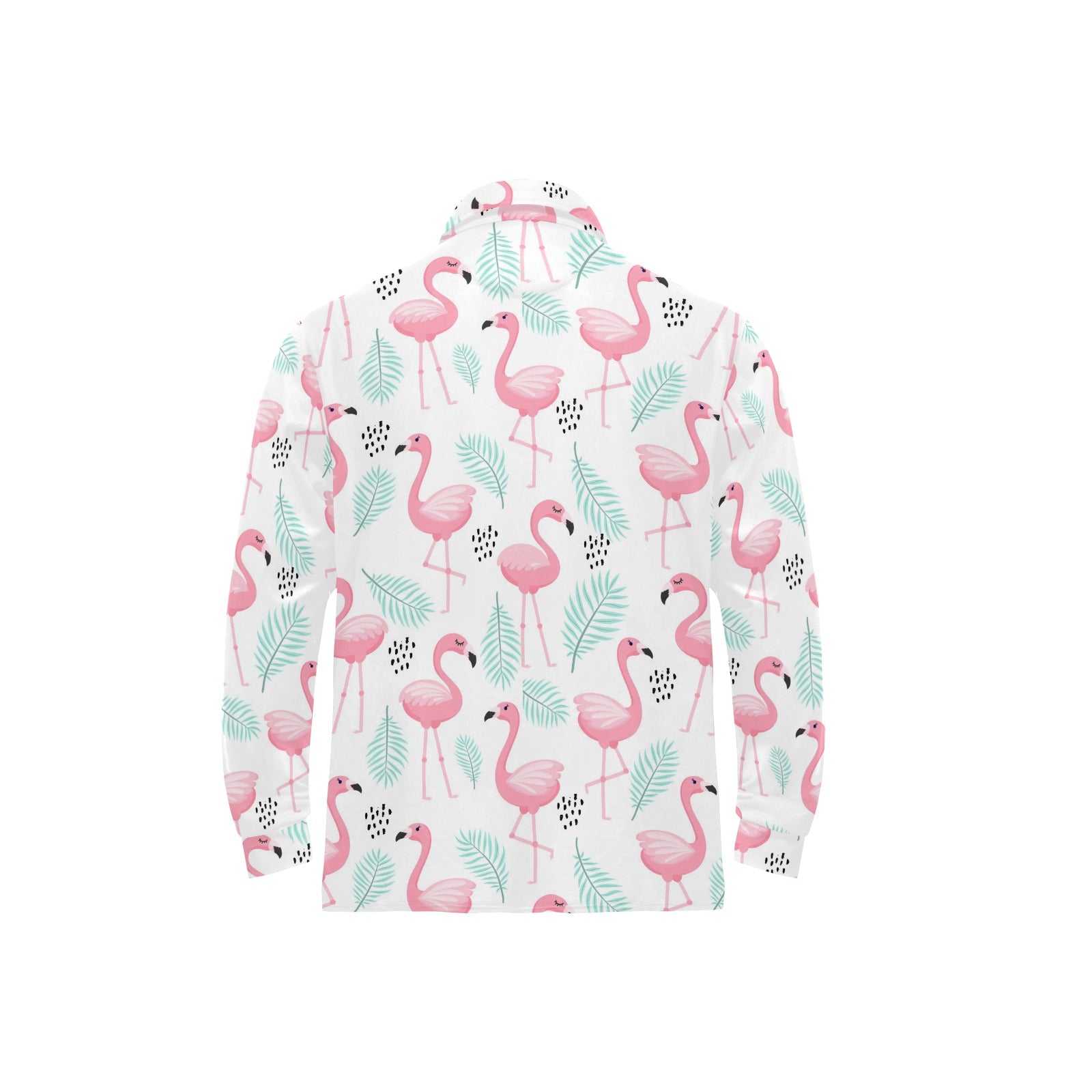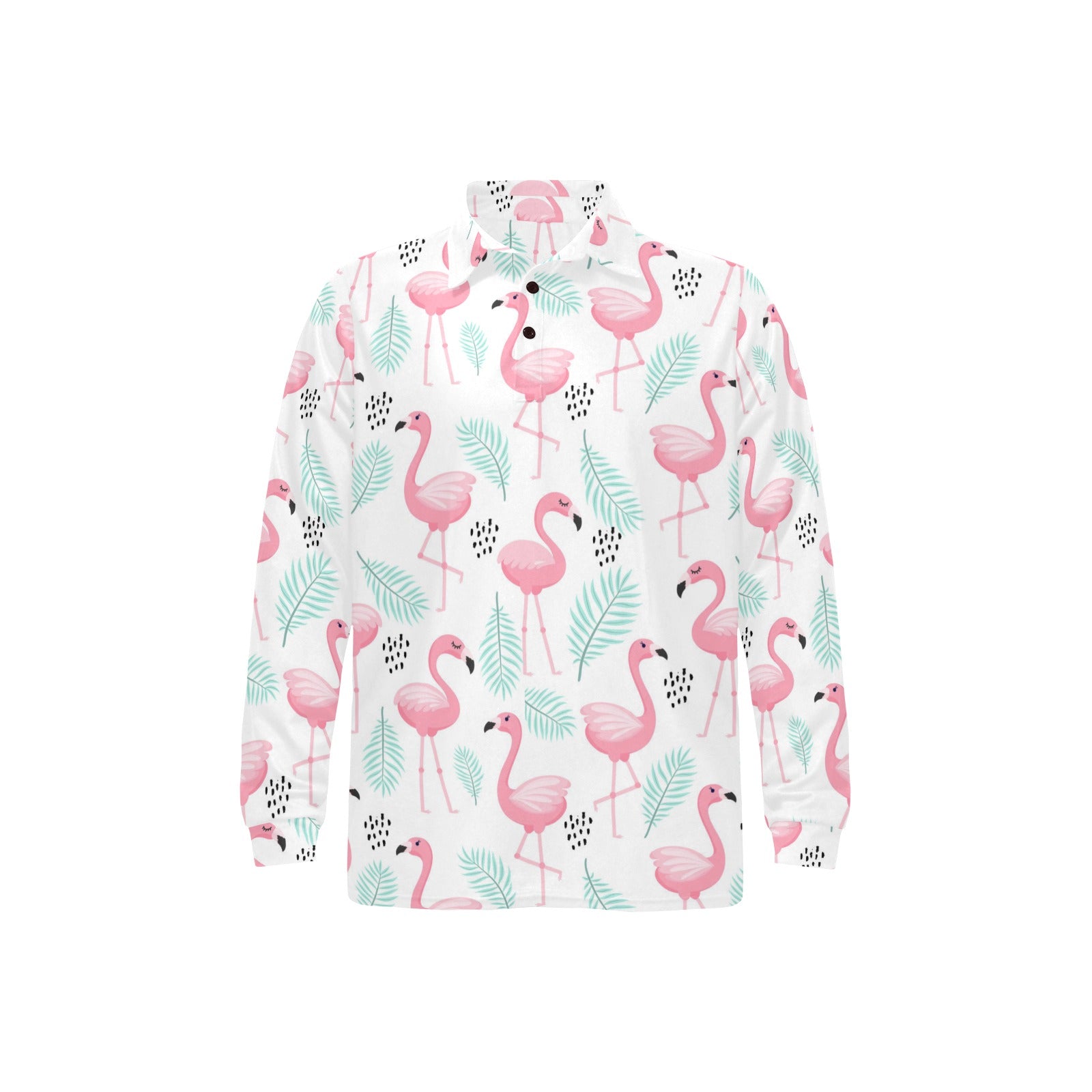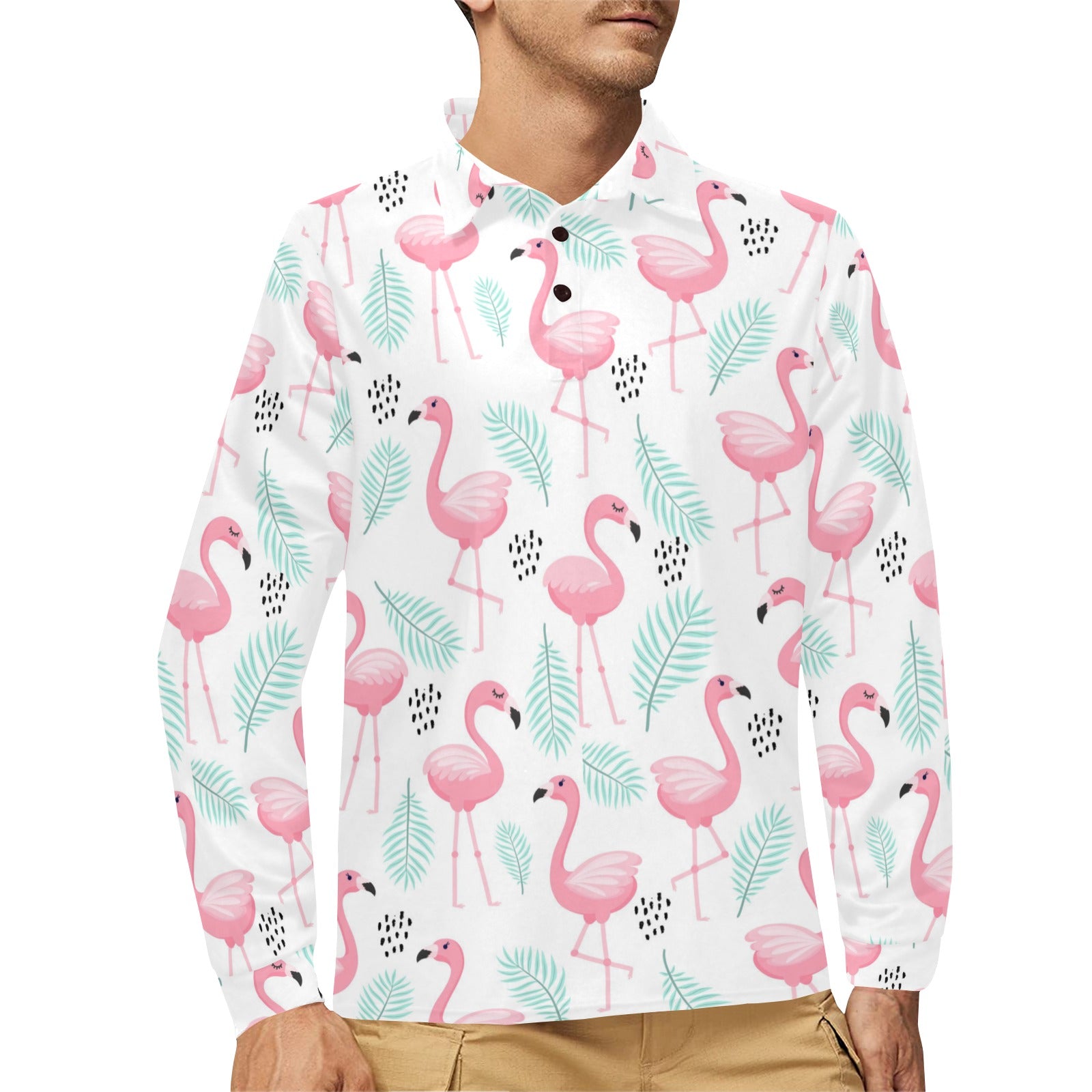 Cute flamingo pattern Men's Long Sleeve Polo Shirt