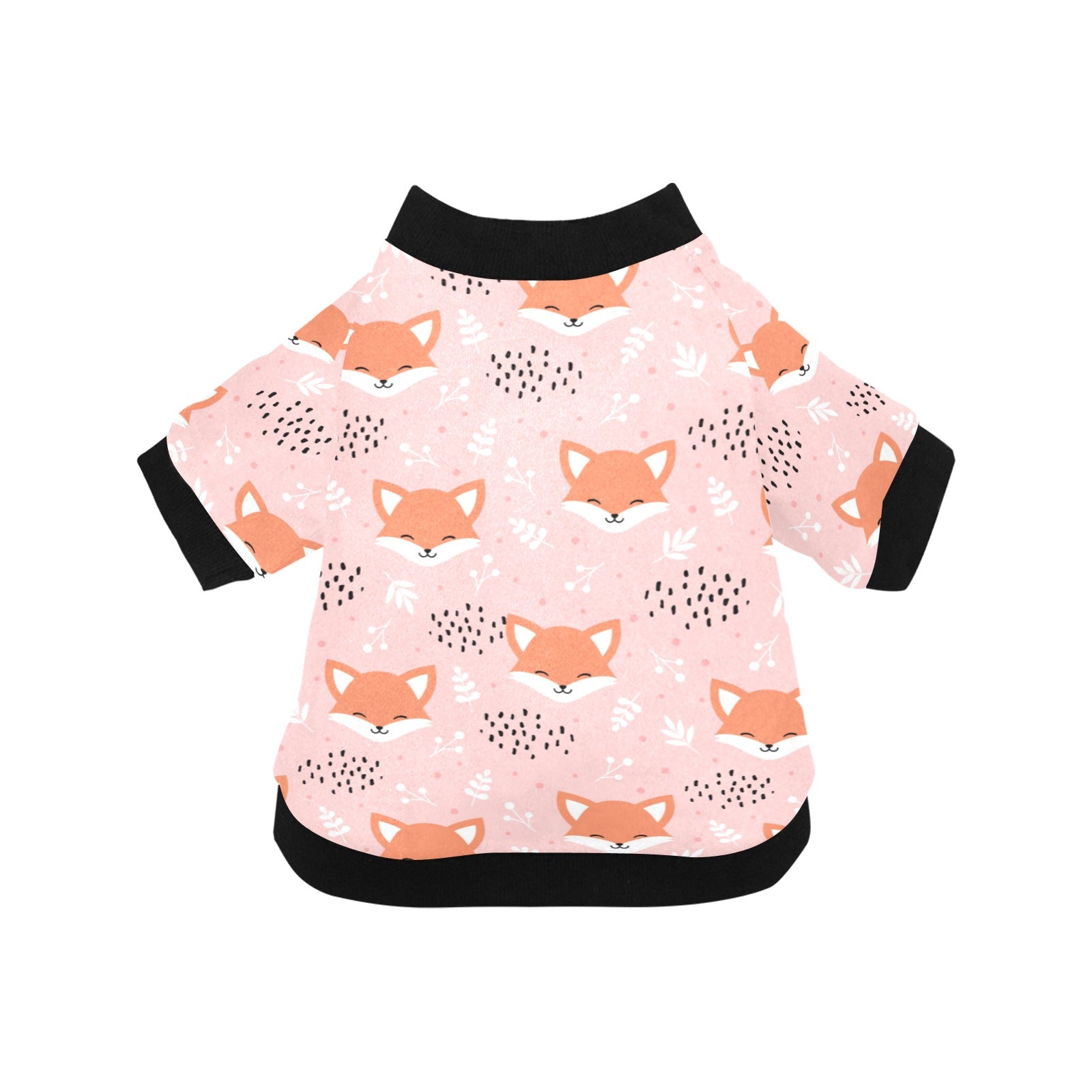 Cute fox pattern pink background All Over Print Pet Dog Round Neck Fuzzy Shirt