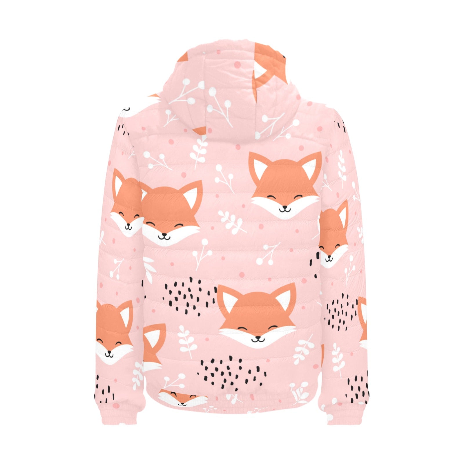 Cute fox pattern pink background Men's Padded Hooded Jacket