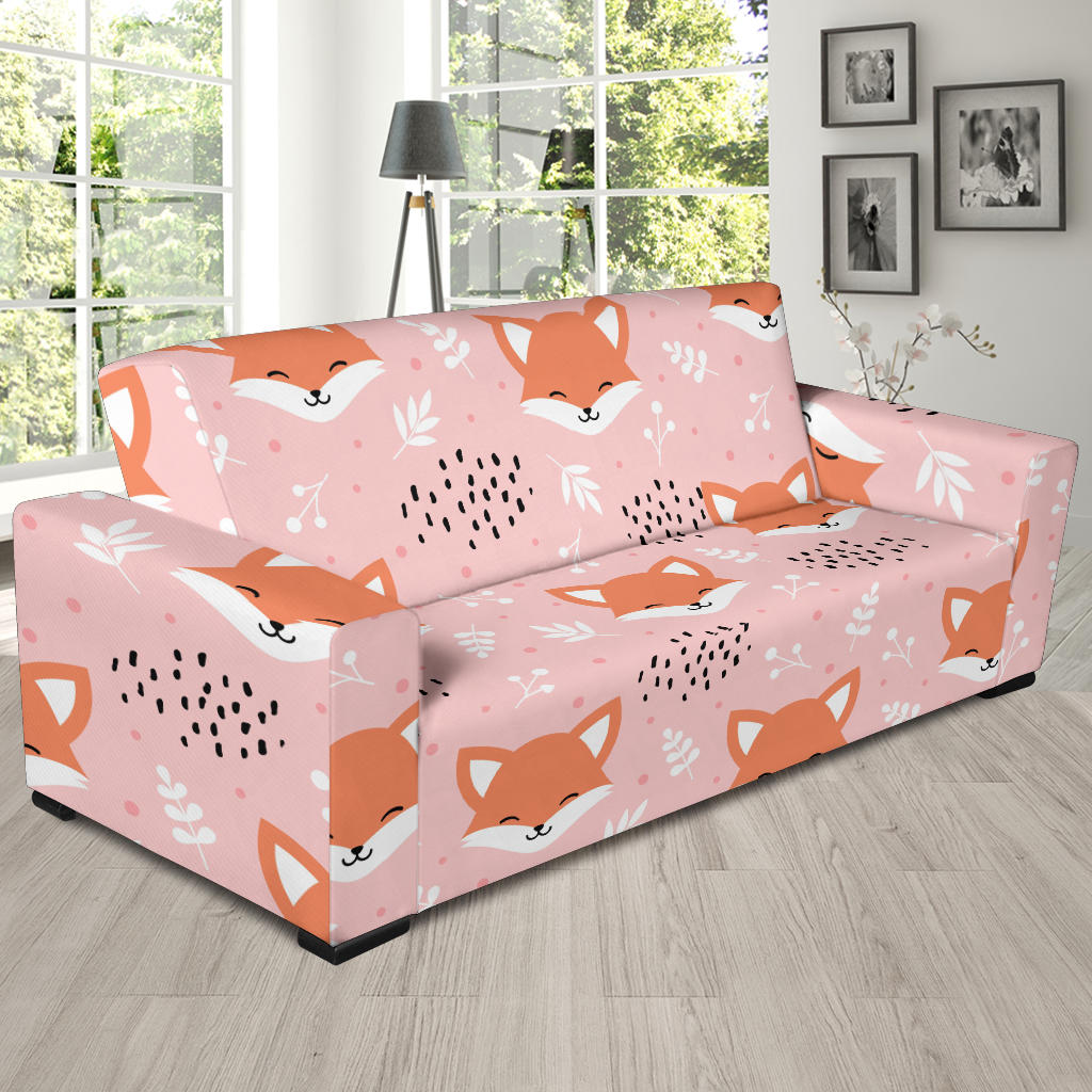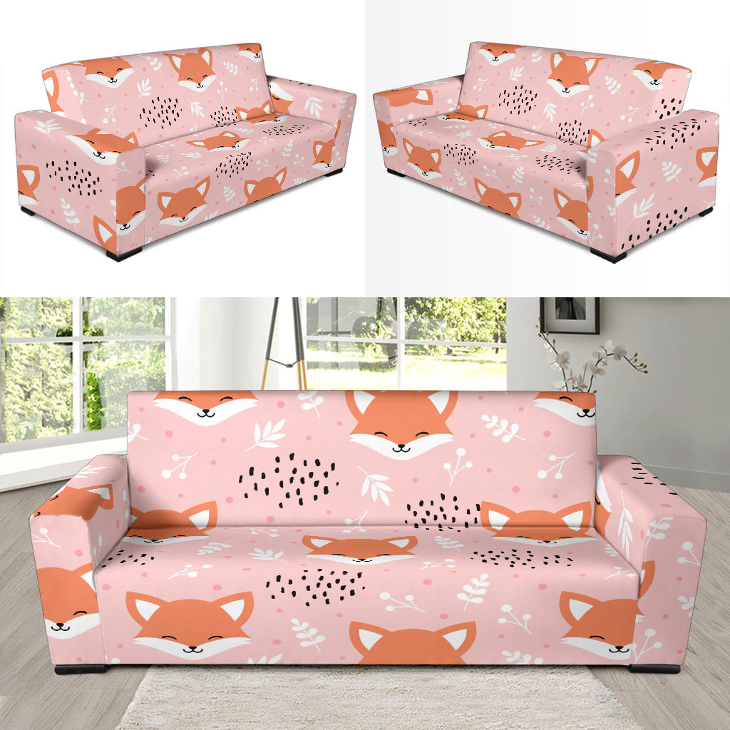 Cute Fox Pattern Pink Background Sofa Slipcover
