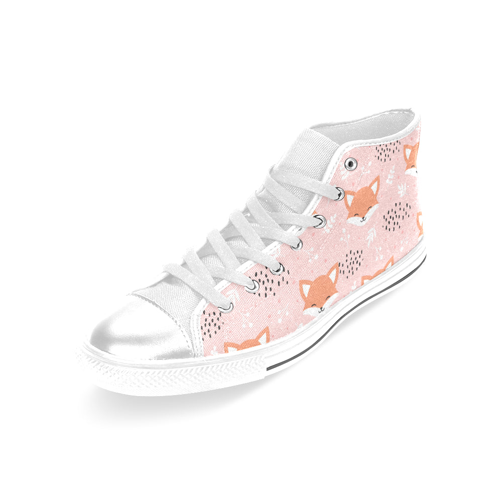 Cute fox pattern pink background Women's High Top Canvas Shoes White