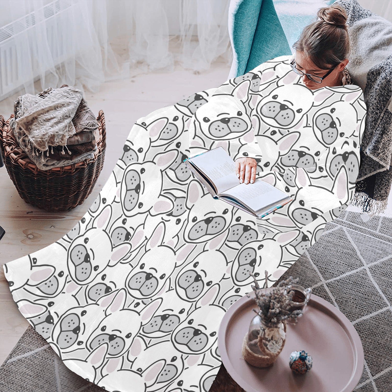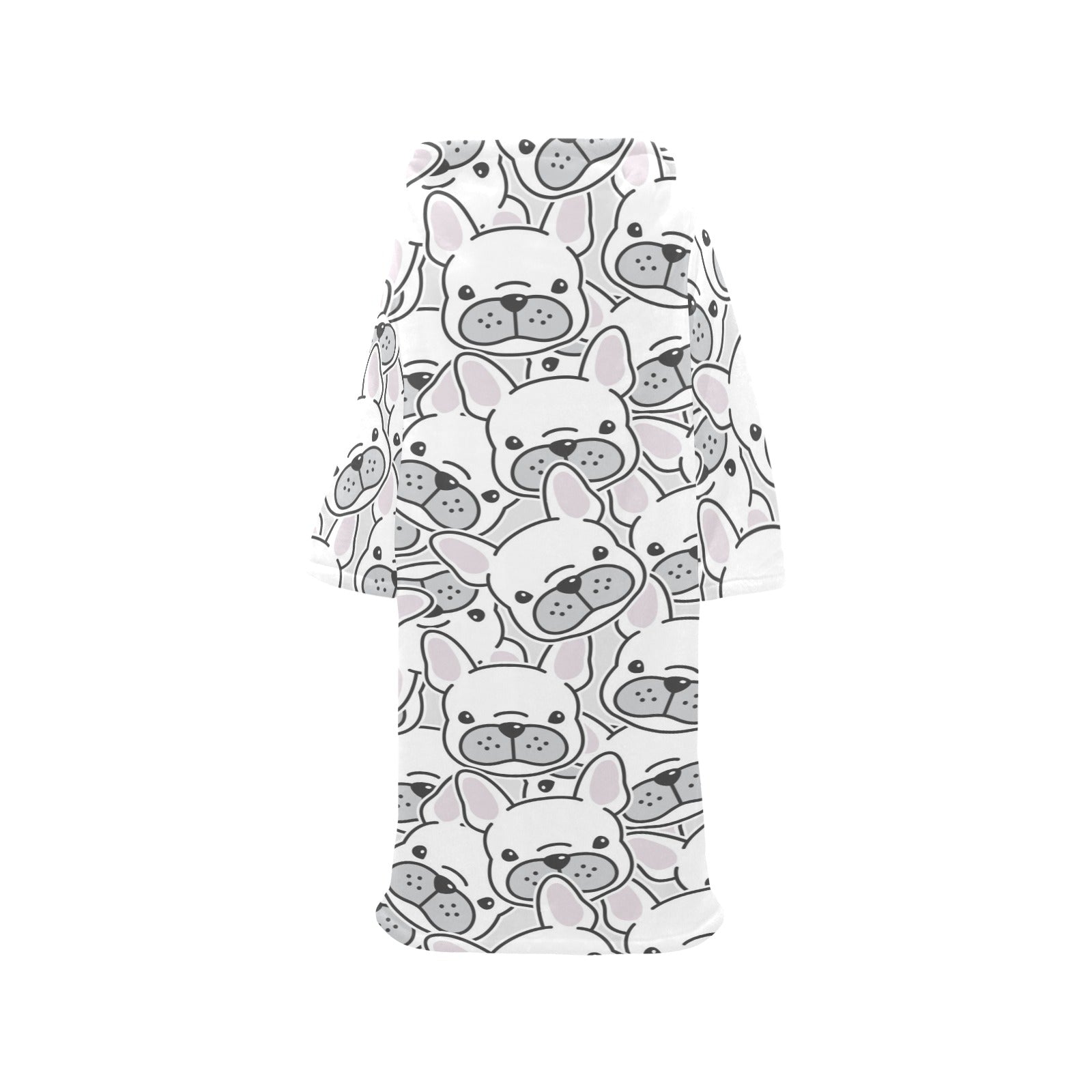 Cute french bulldog head pattern Blanket Robe with Sleeves