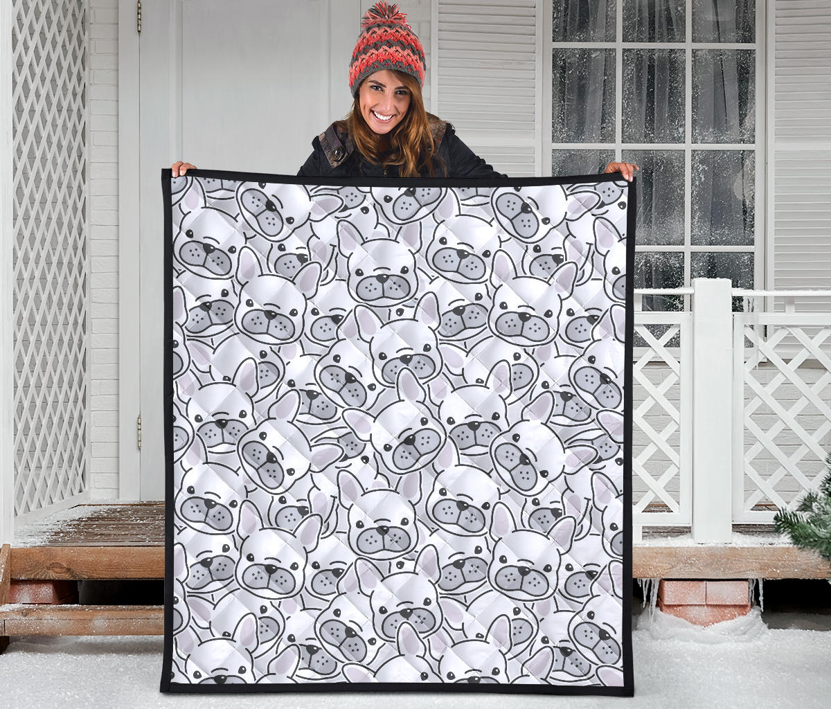 Cute French Bulldog Head Pattern Premium Quilt is a uniqued design and limited item. It made to order, hand printed, and sewn with love in our factory.