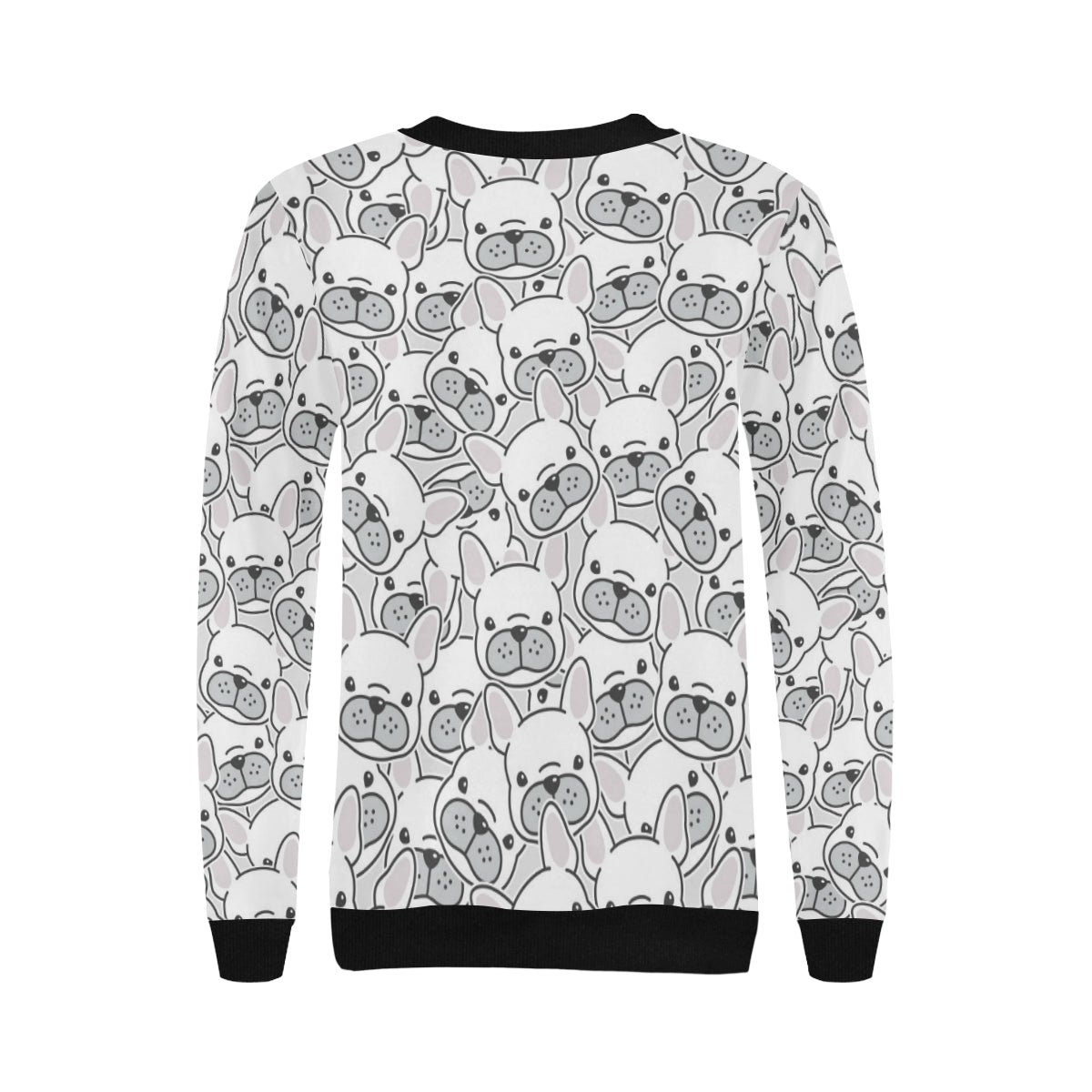 Cute french bulldog head pattern Women's Crew Neck Sweatshirt