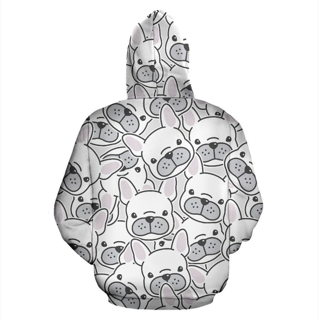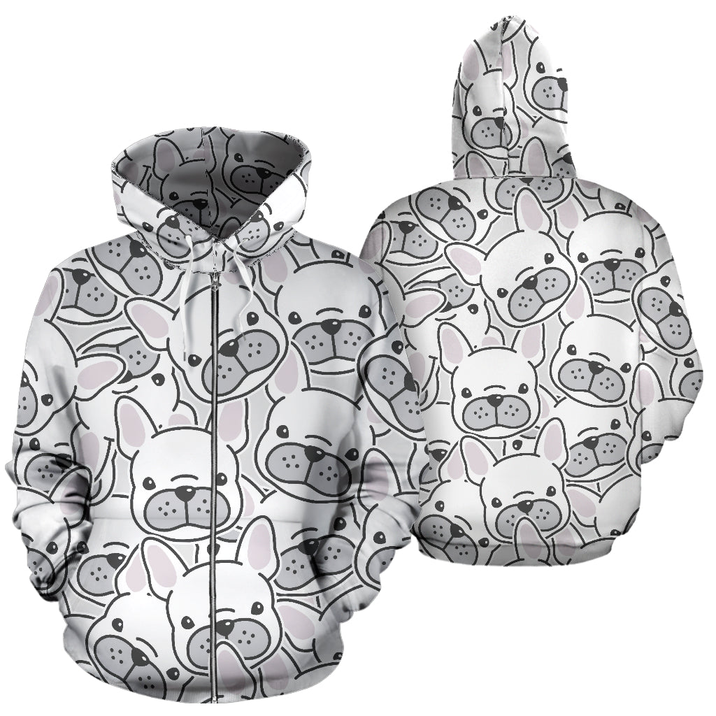 Cute French Bulldog Head Pattern Zip Up Hoodie