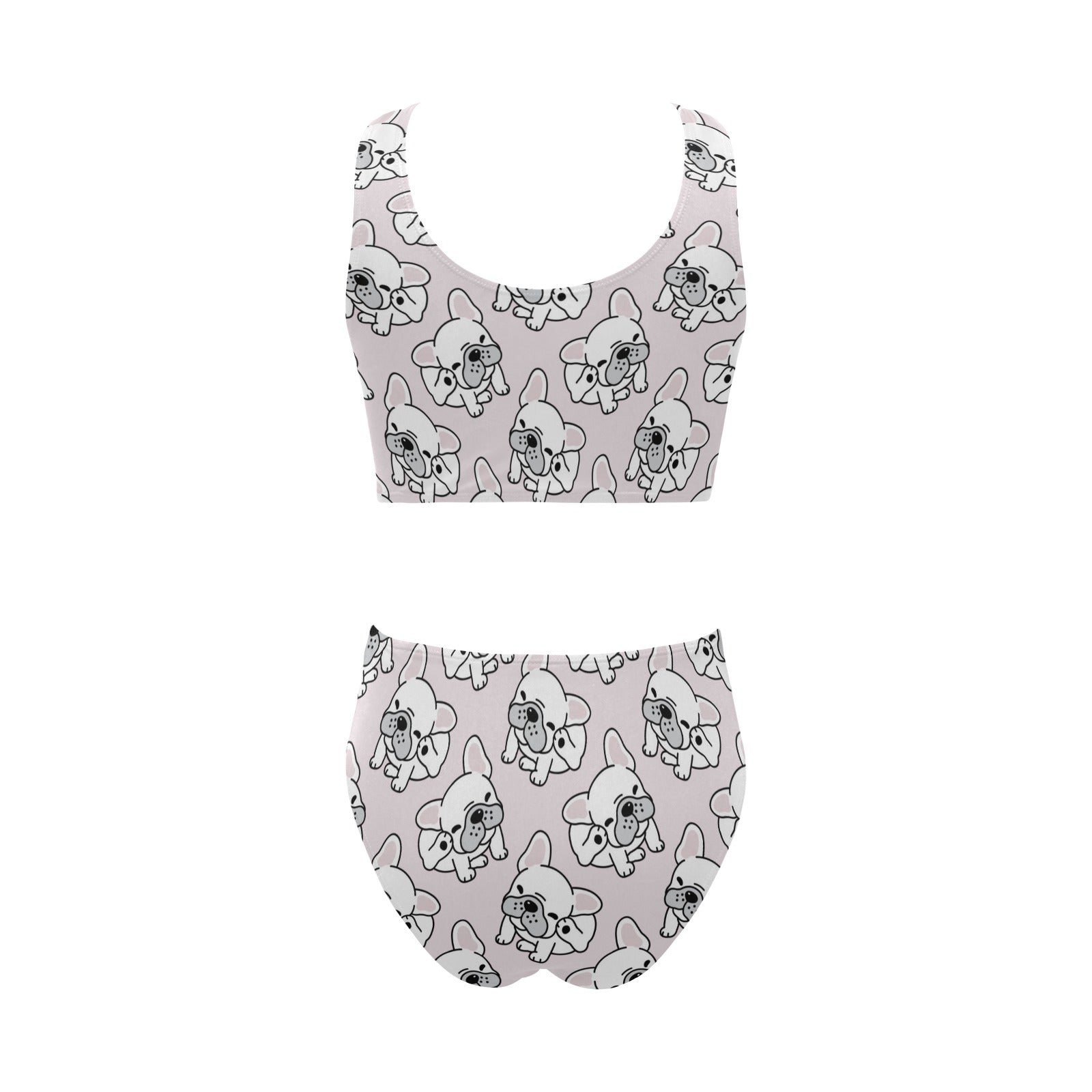 Cute french bulldog pattern Chest Bowknot High Waisted Bikini Swimsuit