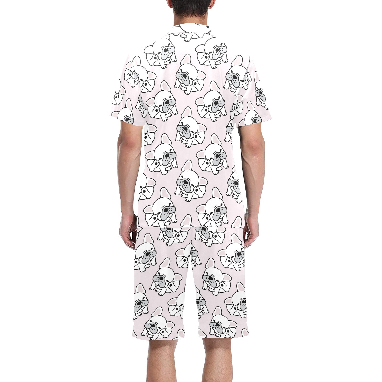 Cute french bulldog pattern Men's V-Neck Short Pajama Set