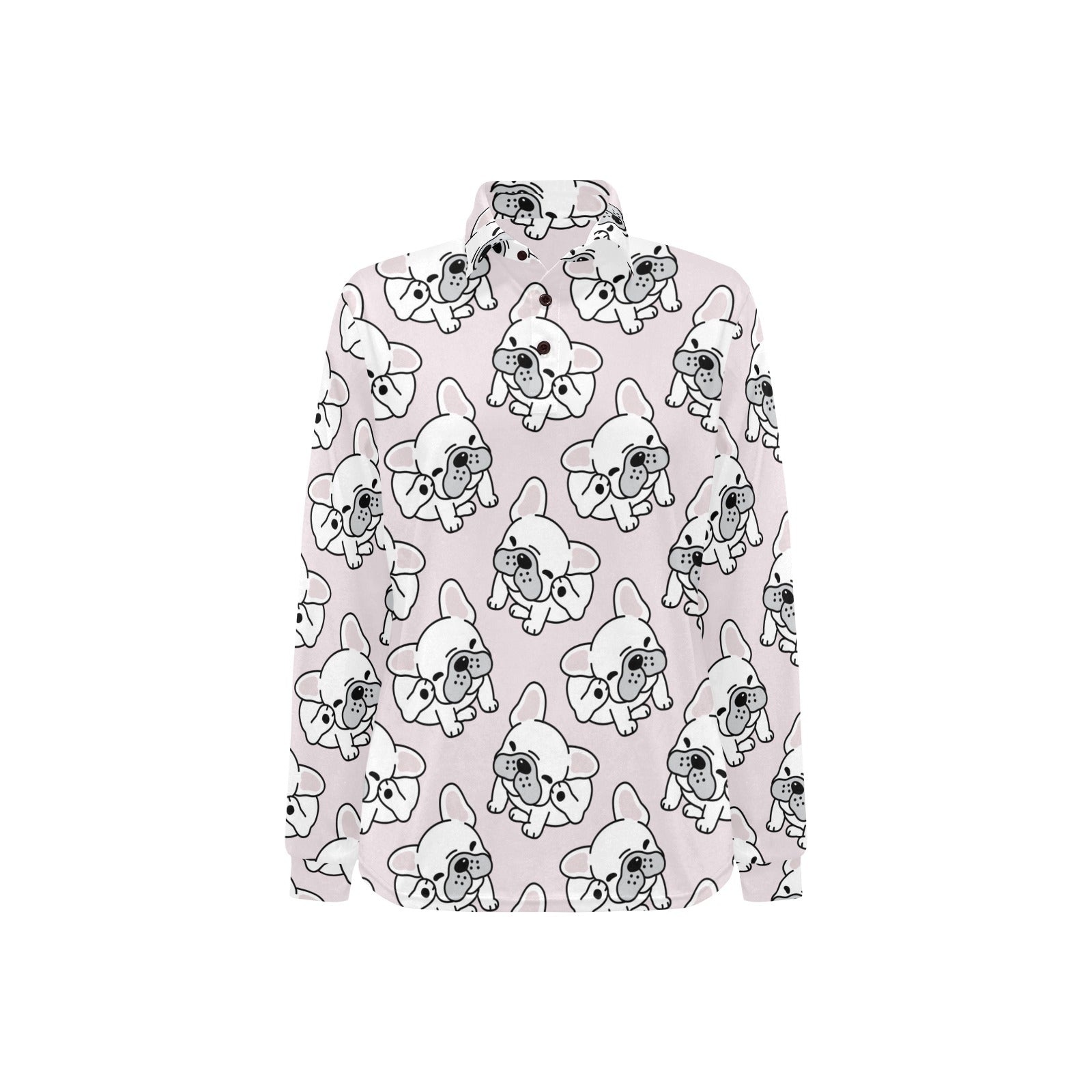 Cute french bulldog pattern Women's Long Sleeve Polo Shirt