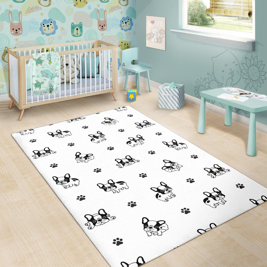 Cute french bulldog paw pattern Area Rug is a uniqued design and limited item. It made to order, hand printed, and sewn with love in our factory.